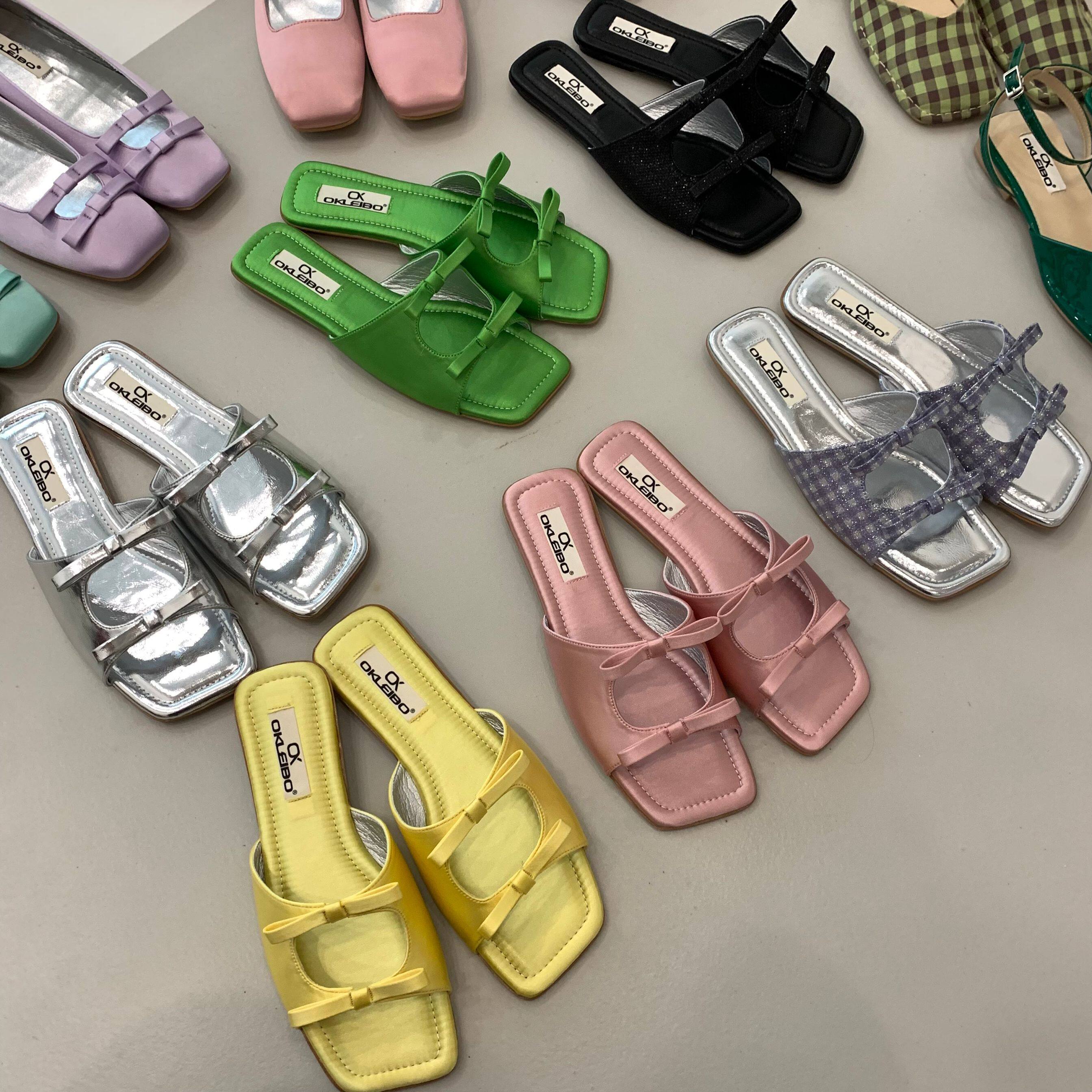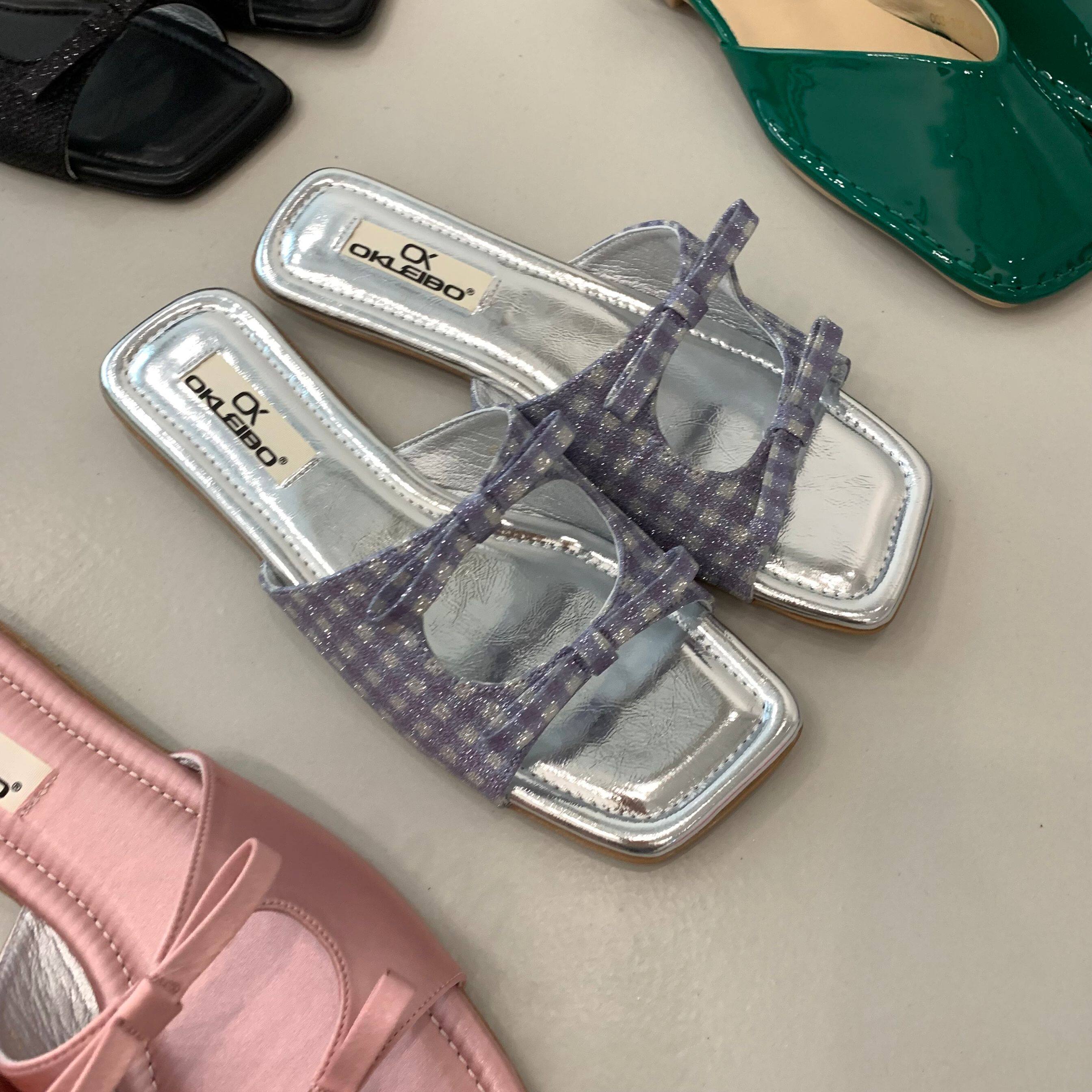 Милая плоская подошва летняя обувь с бантиком, слайдеры, 2022, французский стиль