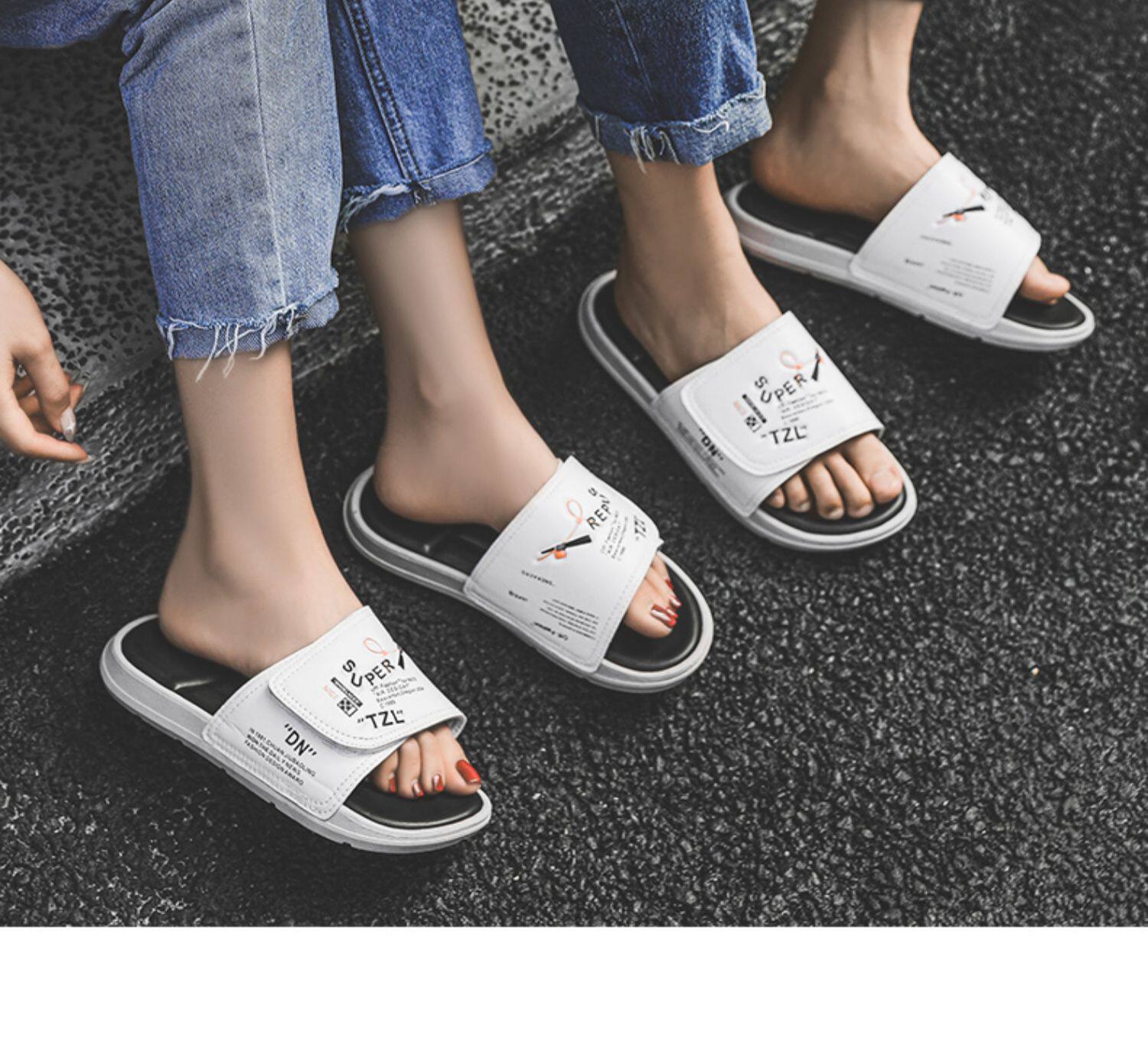 Летние спортивные тапочки на липучке, модные трендовые пляжные нескользящие дезодорированные слайдеры
