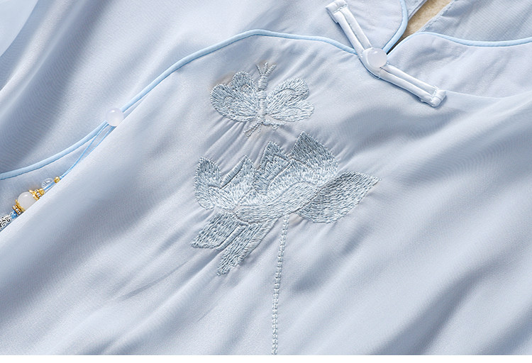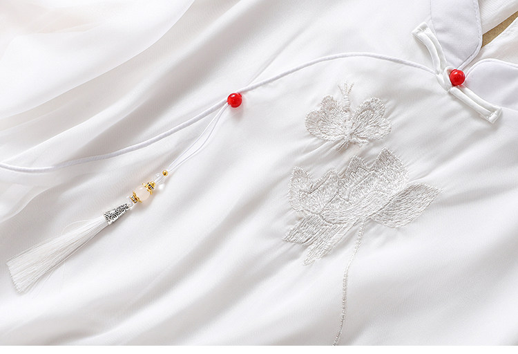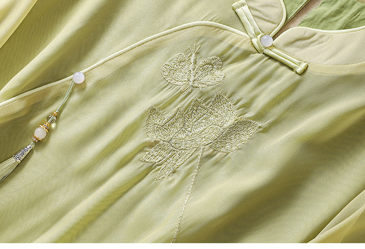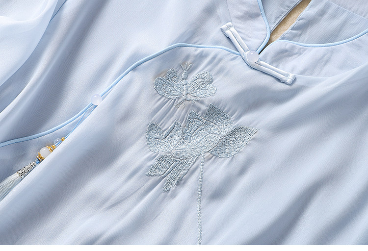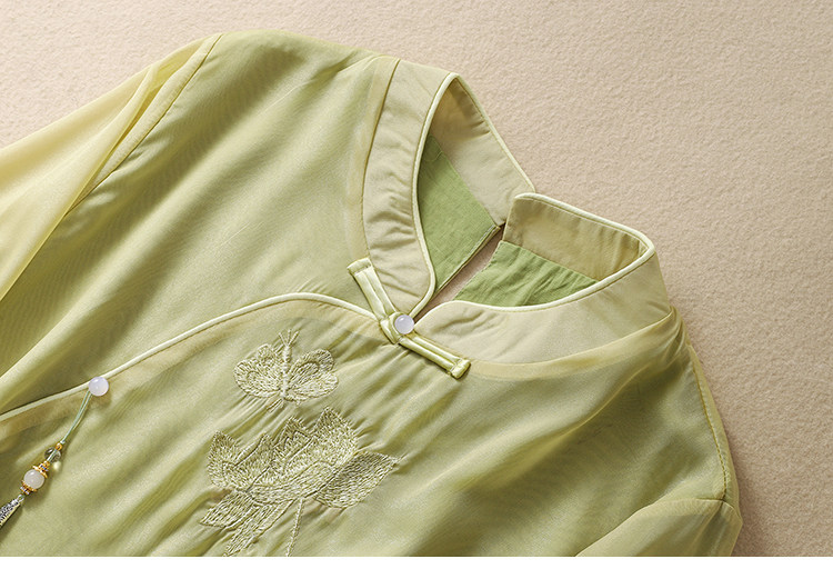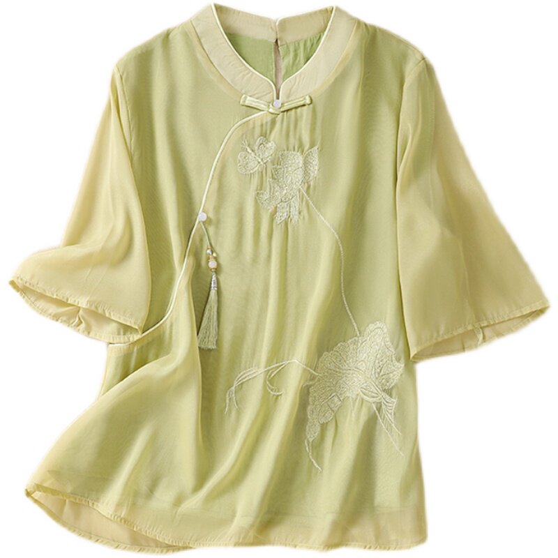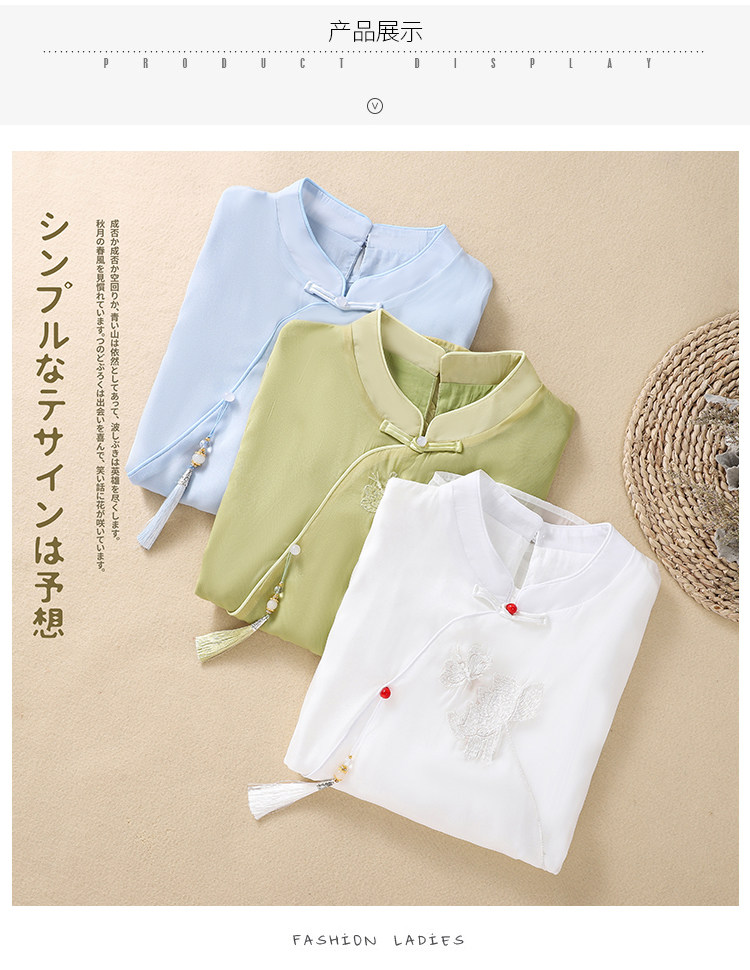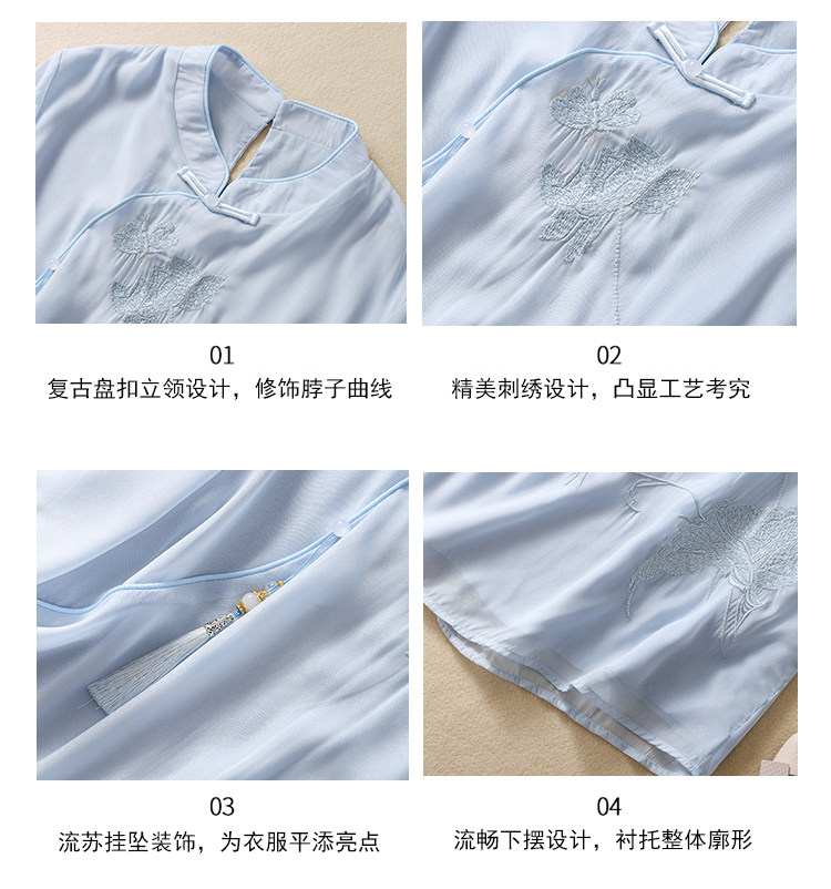 Чайное платье, женские летние топы, ретро-пряжка, китайский костюм Тан с вышивкой дзен, шифоновый улучшенный Cheongsam в китайском стиле династии Хань