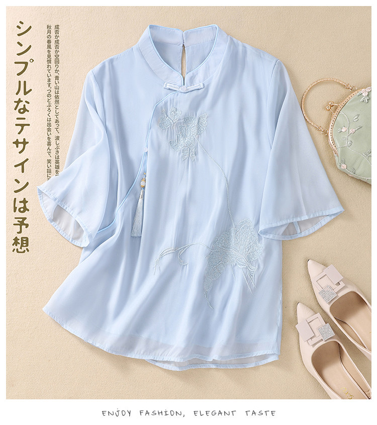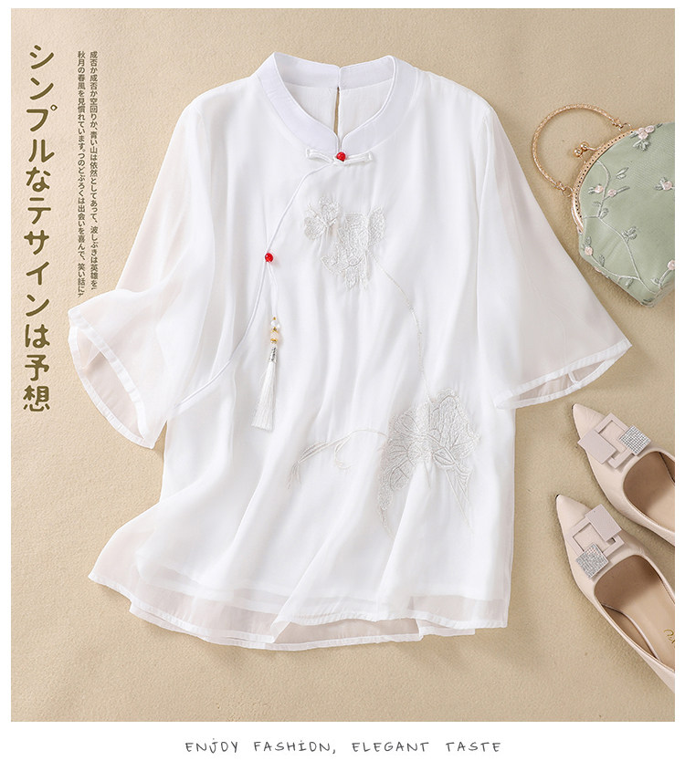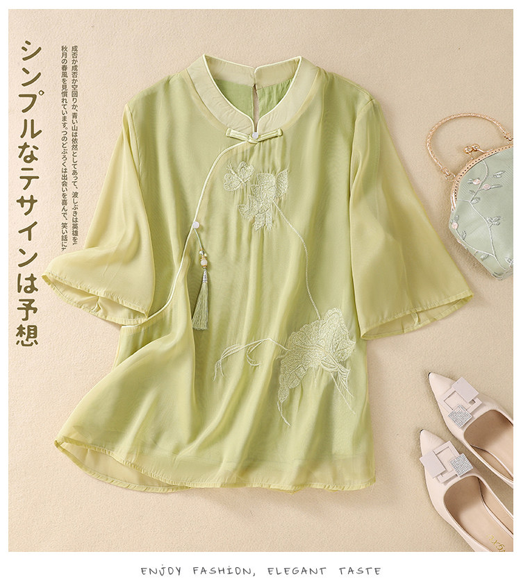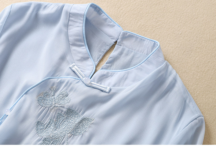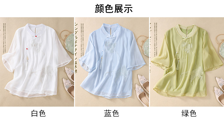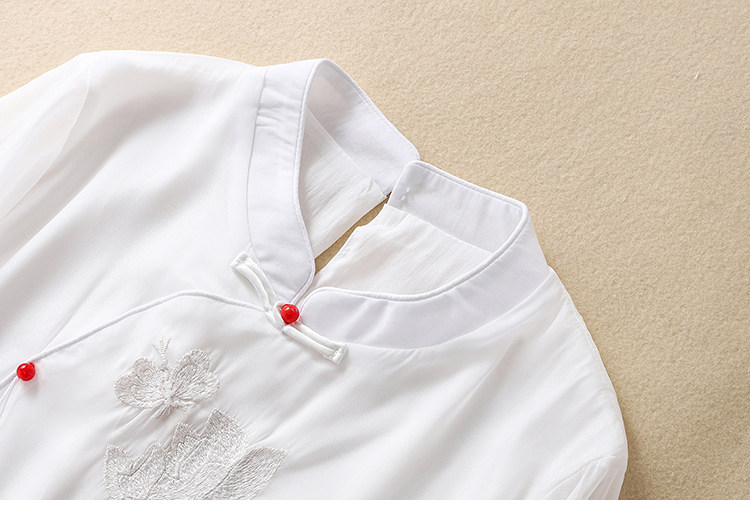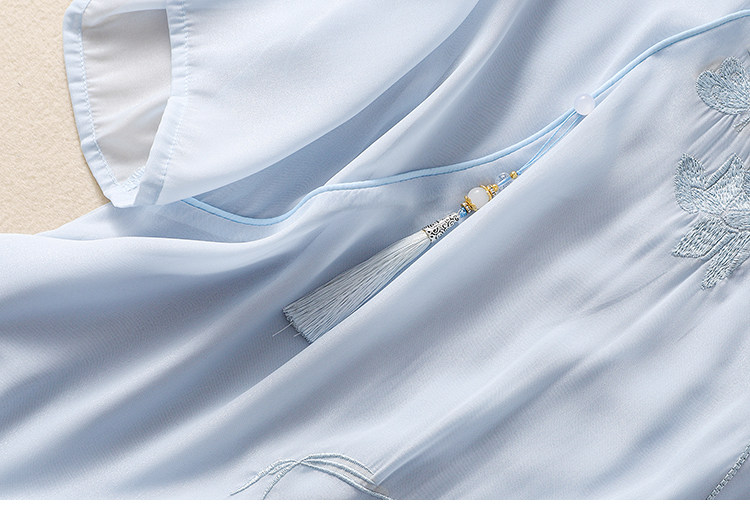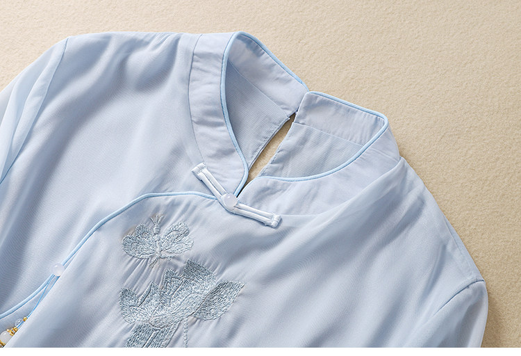 Чайное платье, женские летние топы, ретро-пряжка, китайский костюм Тан с вышивкой дзен, шифоновый улучшенный Cheongsam в китайском стиле династии Хань