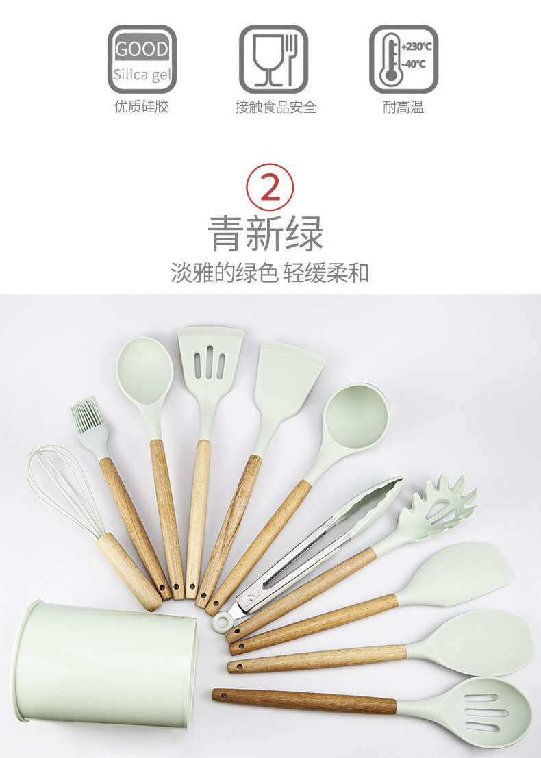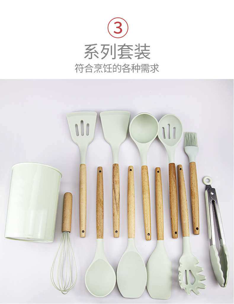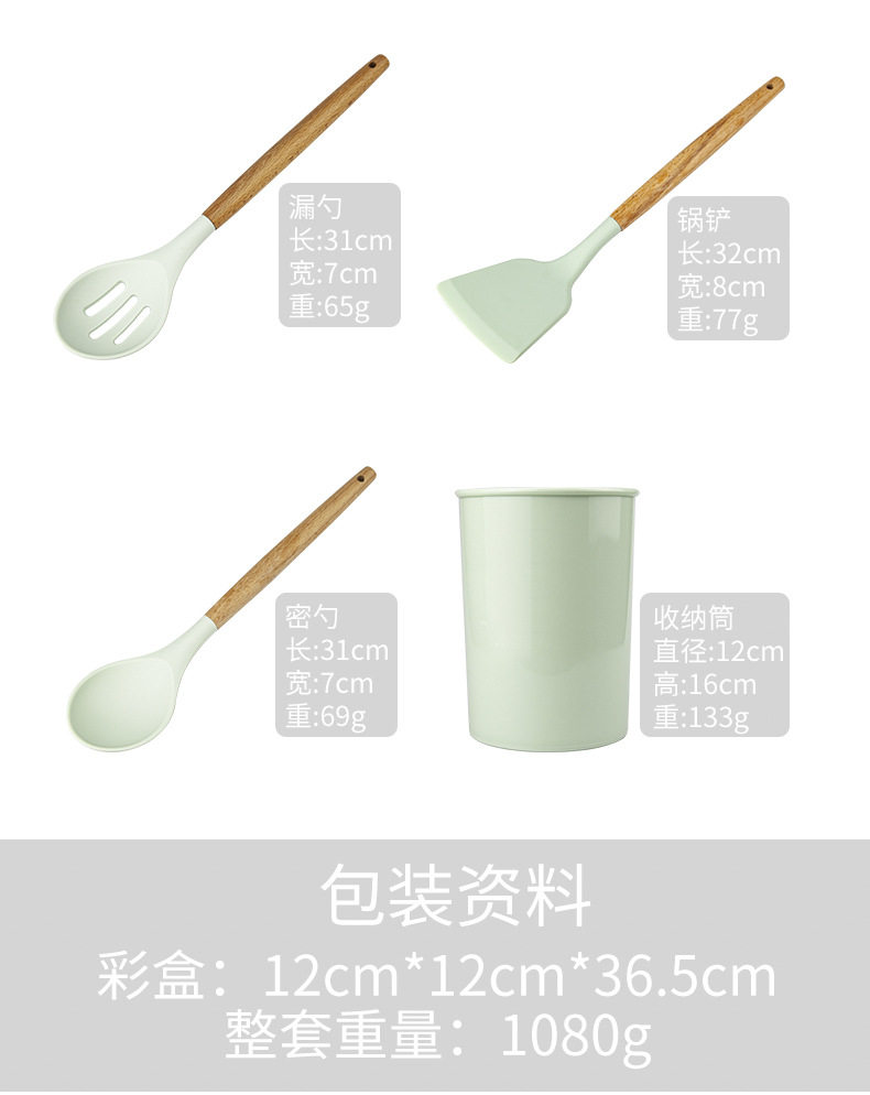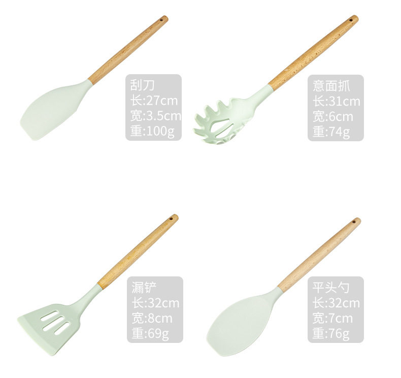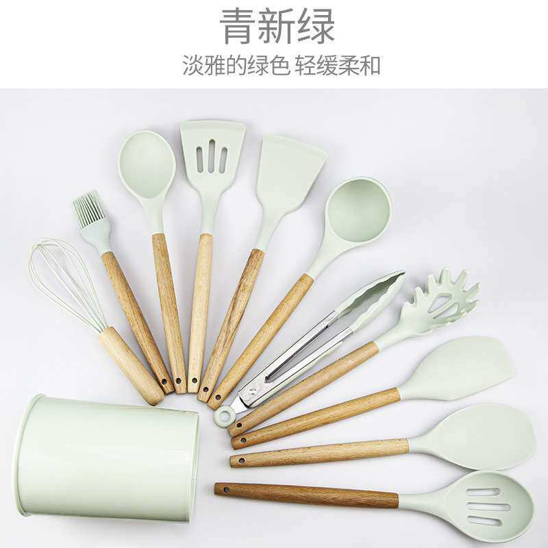 Хранение ствола деревянная ручка силиконовой кухонной посуды 11 SE