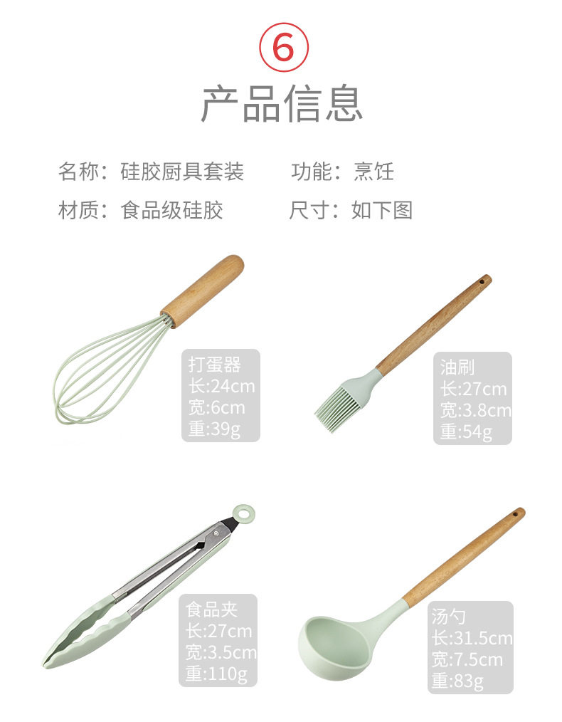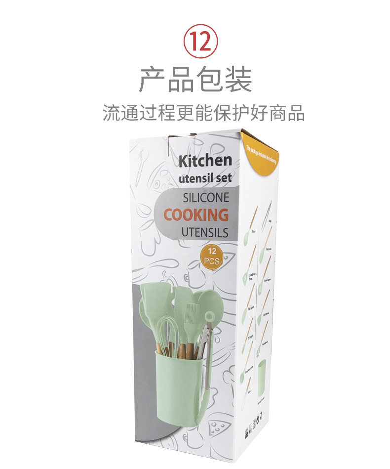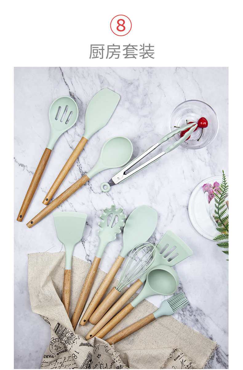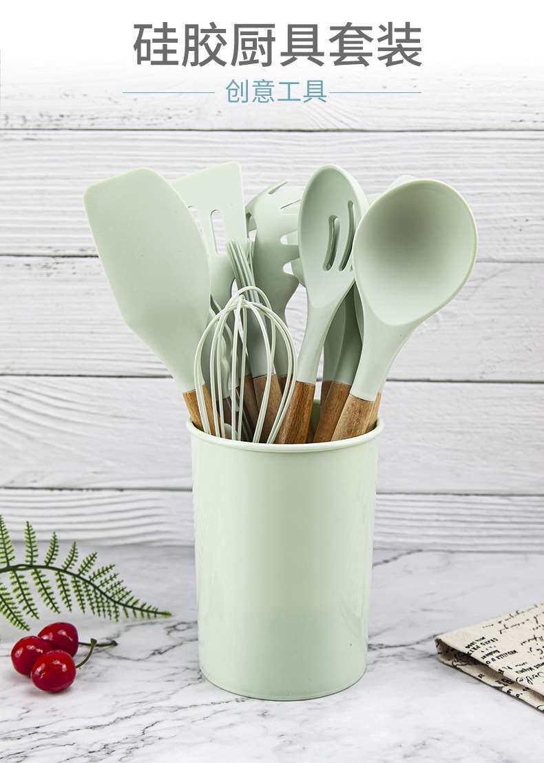 Хранение ствола деревянная ручка силиконовой кухонной посуды 11 SE