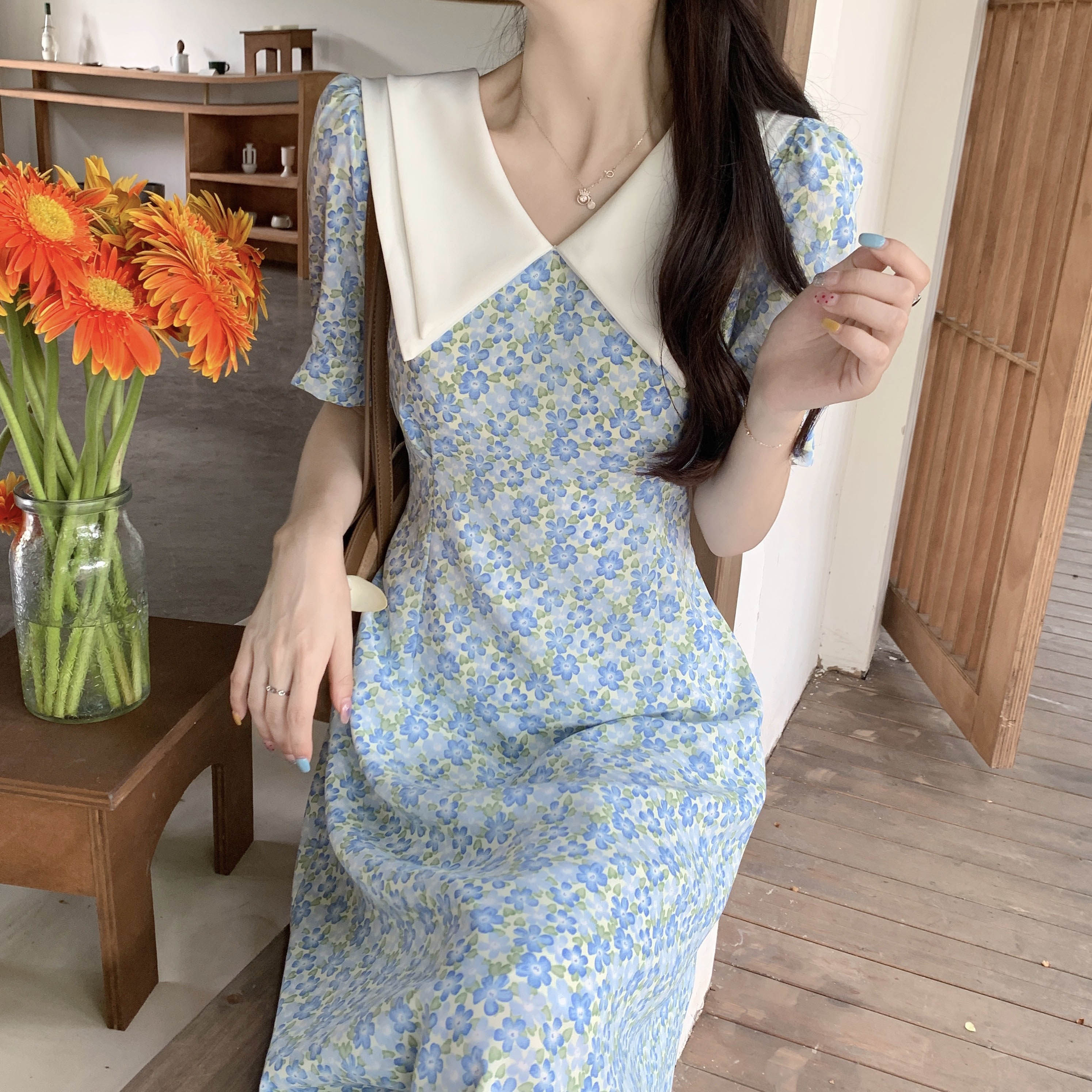 Летний модный приталенный корсет, свежее платье, большой размер, в корейском стиле, французский стиль, цветочный принт