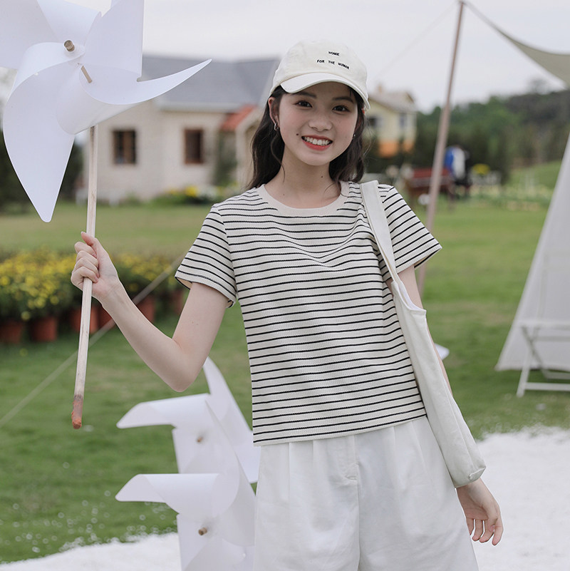 Летняя базовая футболка, короткий рукав, в корейском стиле, свободный крой, подходит для подростков
