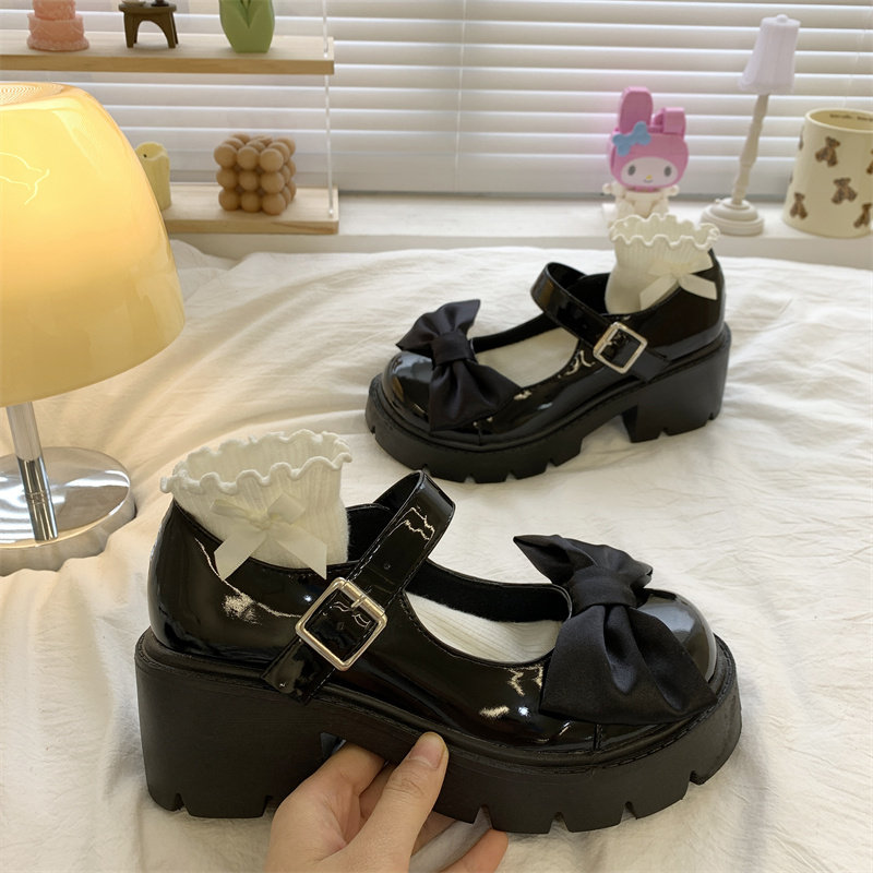 Сексуальная высокая летняя обувь с бантиком на платформе для кожаной обуви