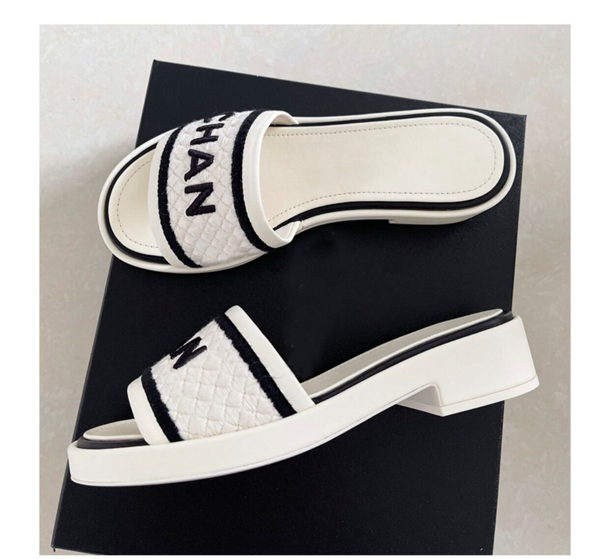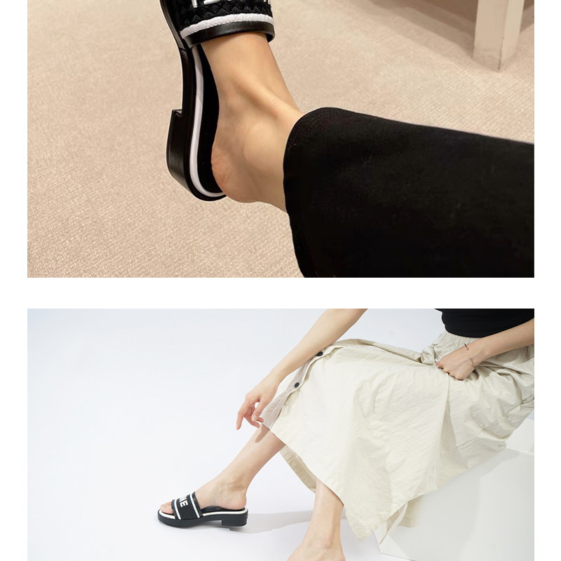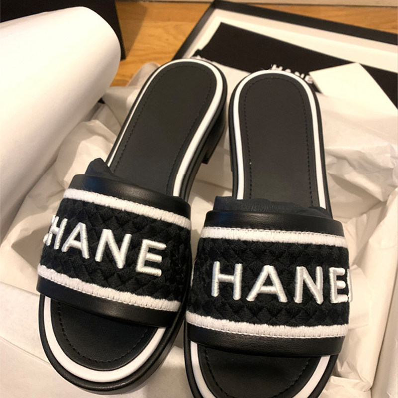 Босоножки, универсальные тапочки, Гонконг, в стиле Шанель, с вышивкой