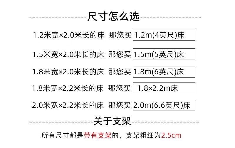 | Ширина кровати: | Кровать шириной 1,2 м (увеличена за счет утолщенного кронштейна толщиной 25 мм), Кровать шириной 1,5 м [увеличена за счет утолщенного кронштейна толщиной 25 мм], Кровать длиной 1,8 м [увеличена за счет утолщенного кронштейна толщиной 25 мм], Кровать 1,8×2,2 м (увеличена за счет утолщенного кронштейна толщиной 25 мм), Кровать шириной 2,0 м [модернизирована за счет утолщенного кронштейна толщиной 25 мм] |