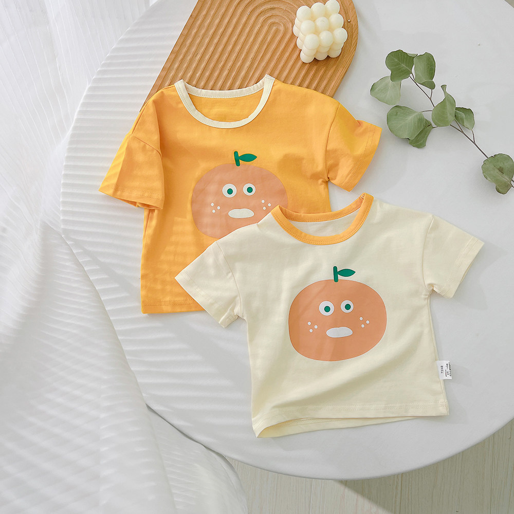 Детская хлопковая футболка с коротким рукавом, мультяшная летняя одежда, милая рубашка, в корейском стиле, детская одежда