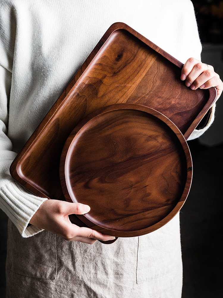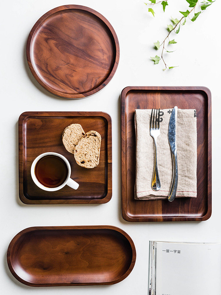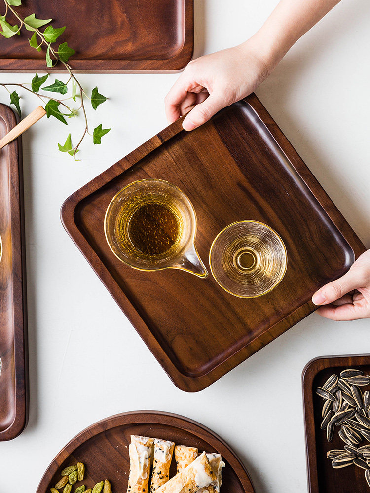 Япония импортировала IKEA, японский деревянный поднос из черного ореха, прямоугольная чашка из цельного дерева, чайный поднос, домашний деревянный поднос