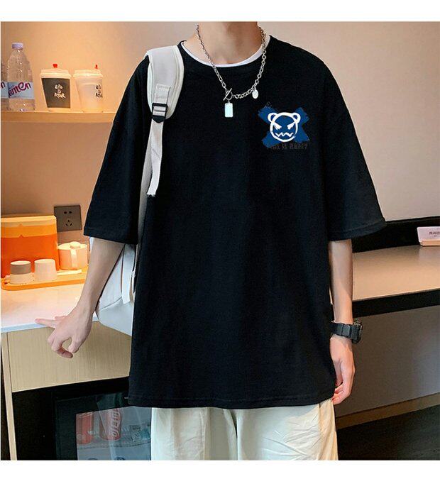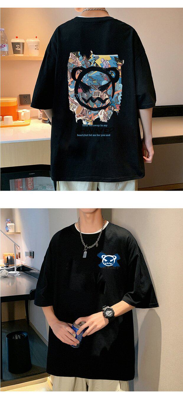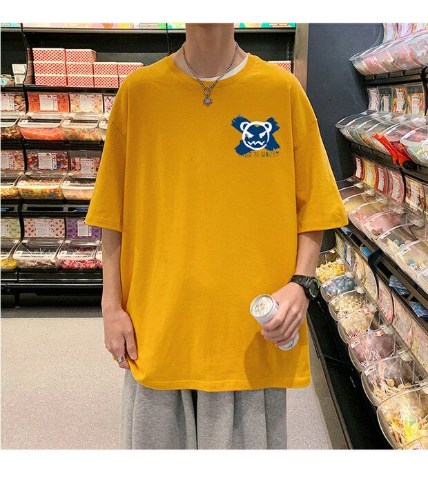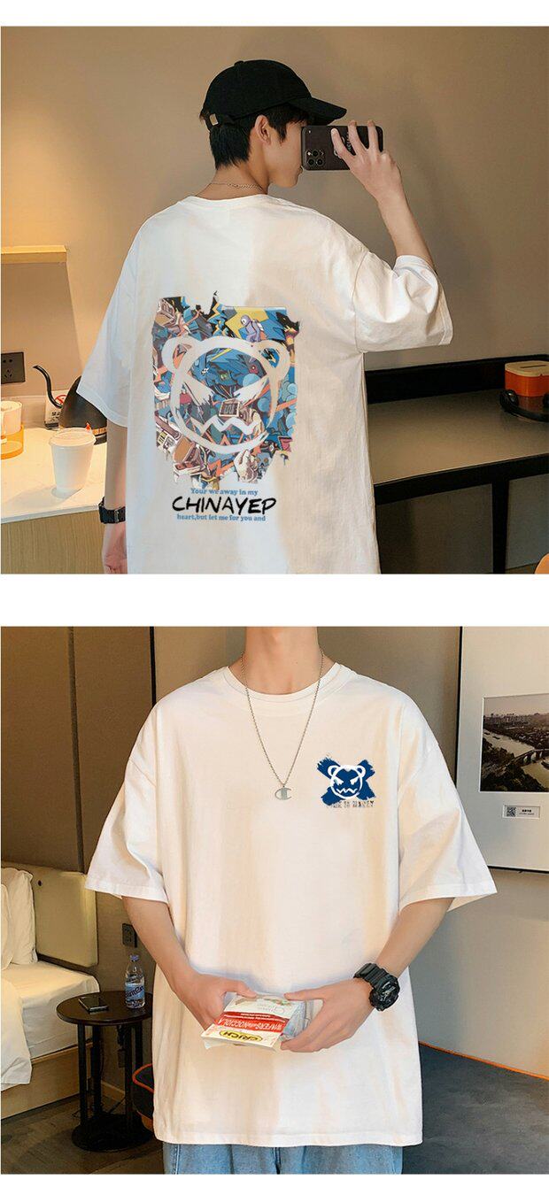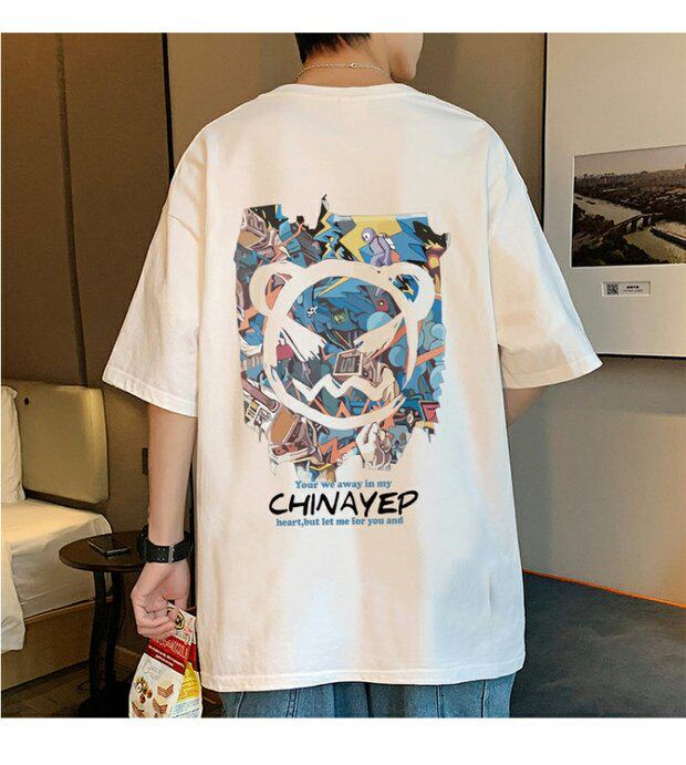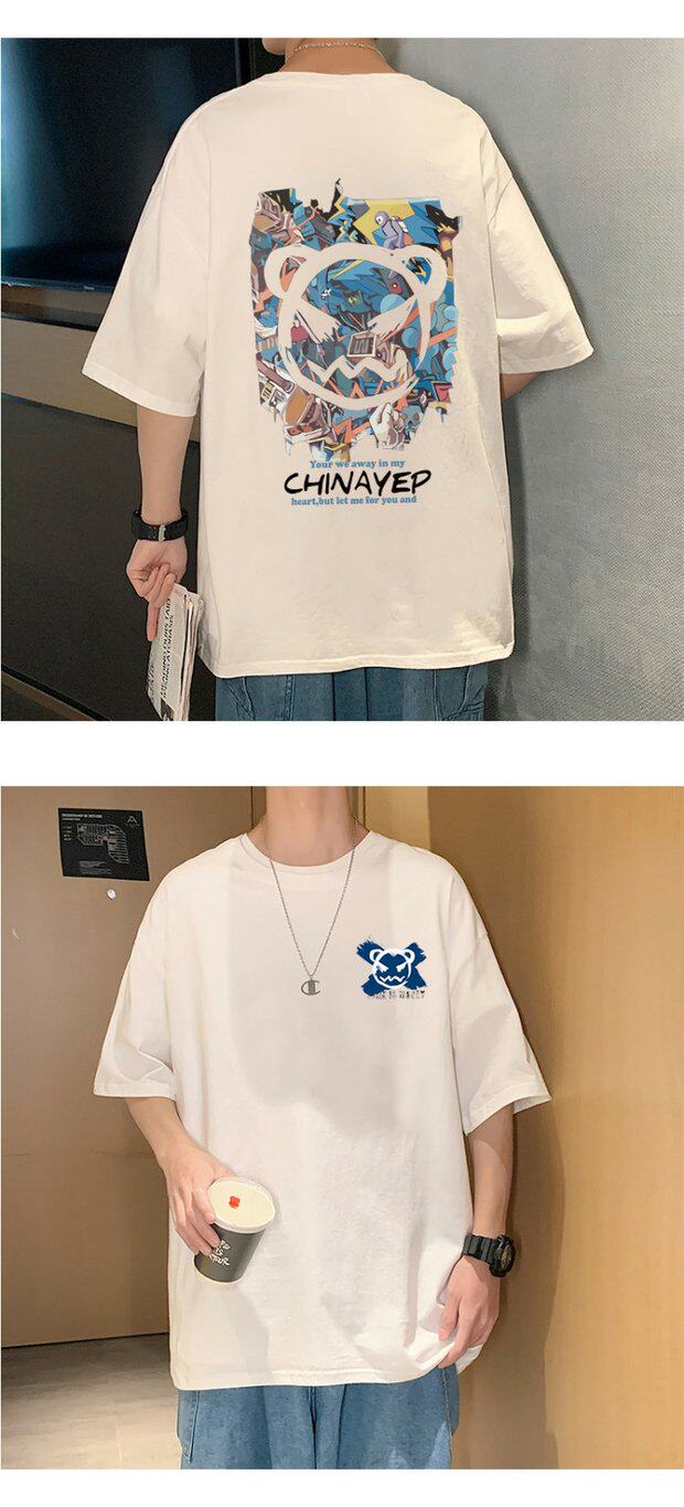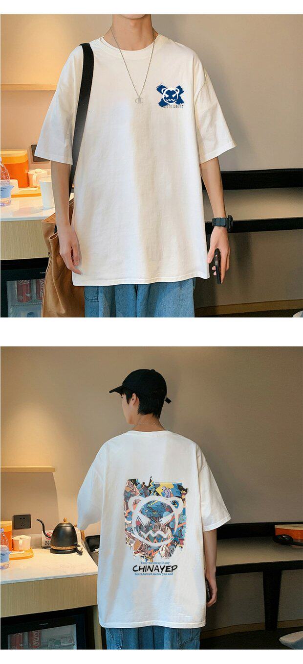 Тонкая хлопковая мультяшная базовая приятная телу футболка с коротким рукавом, оверсайз