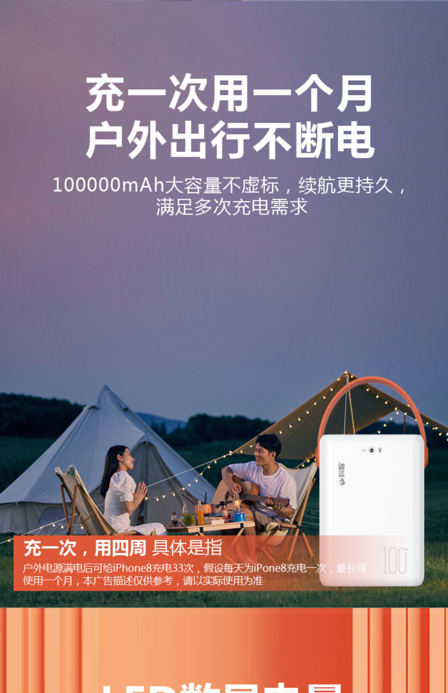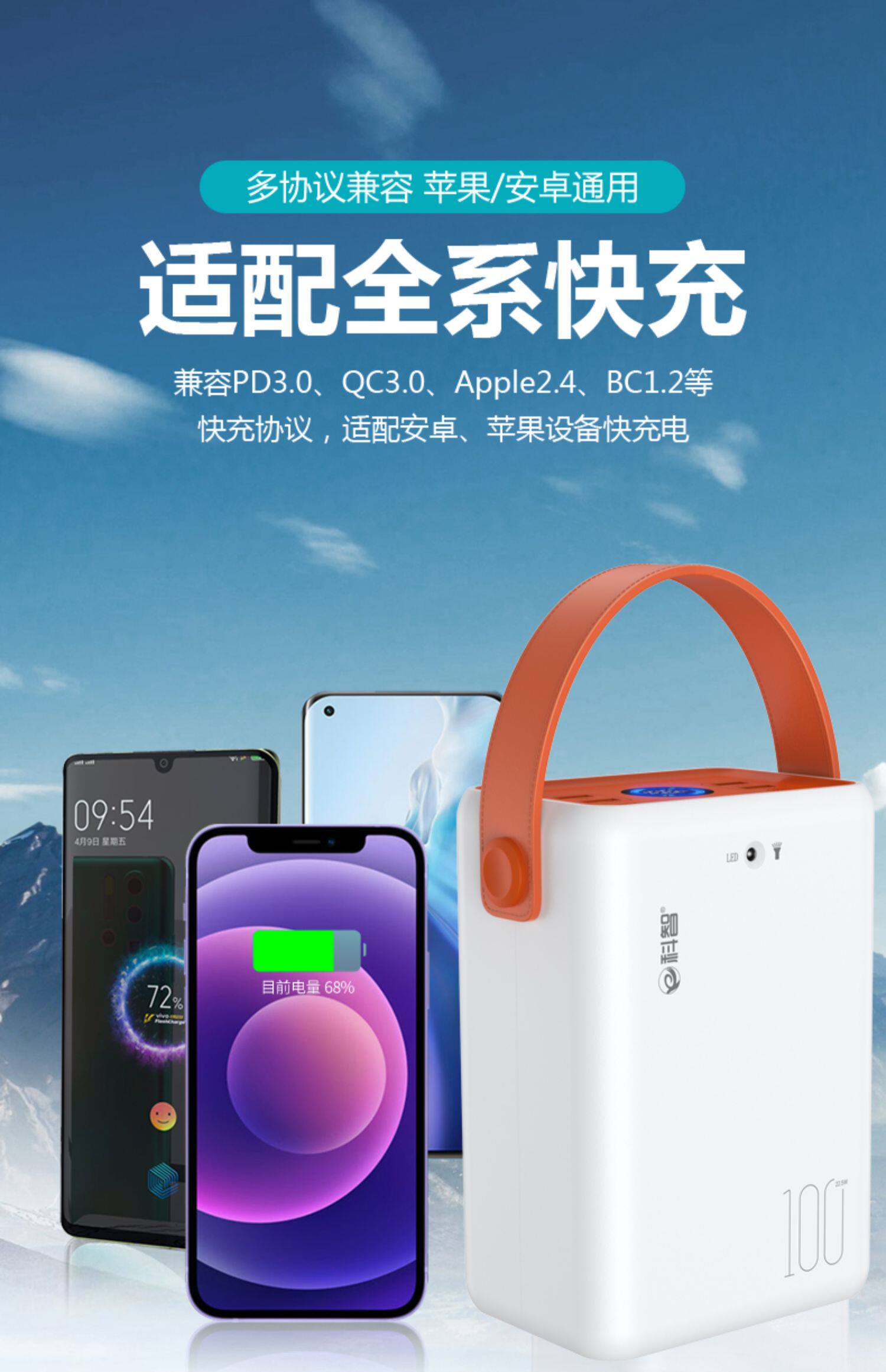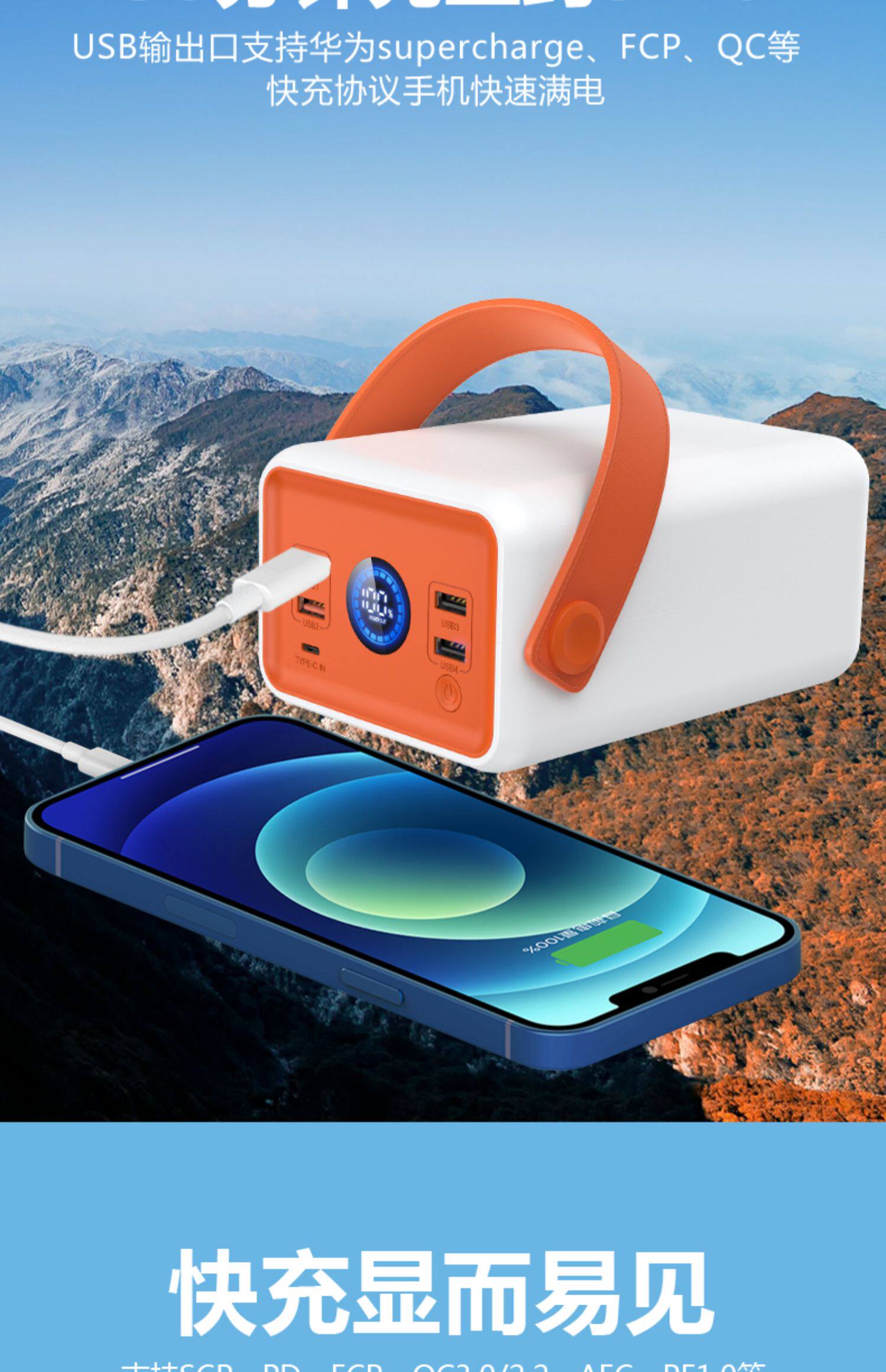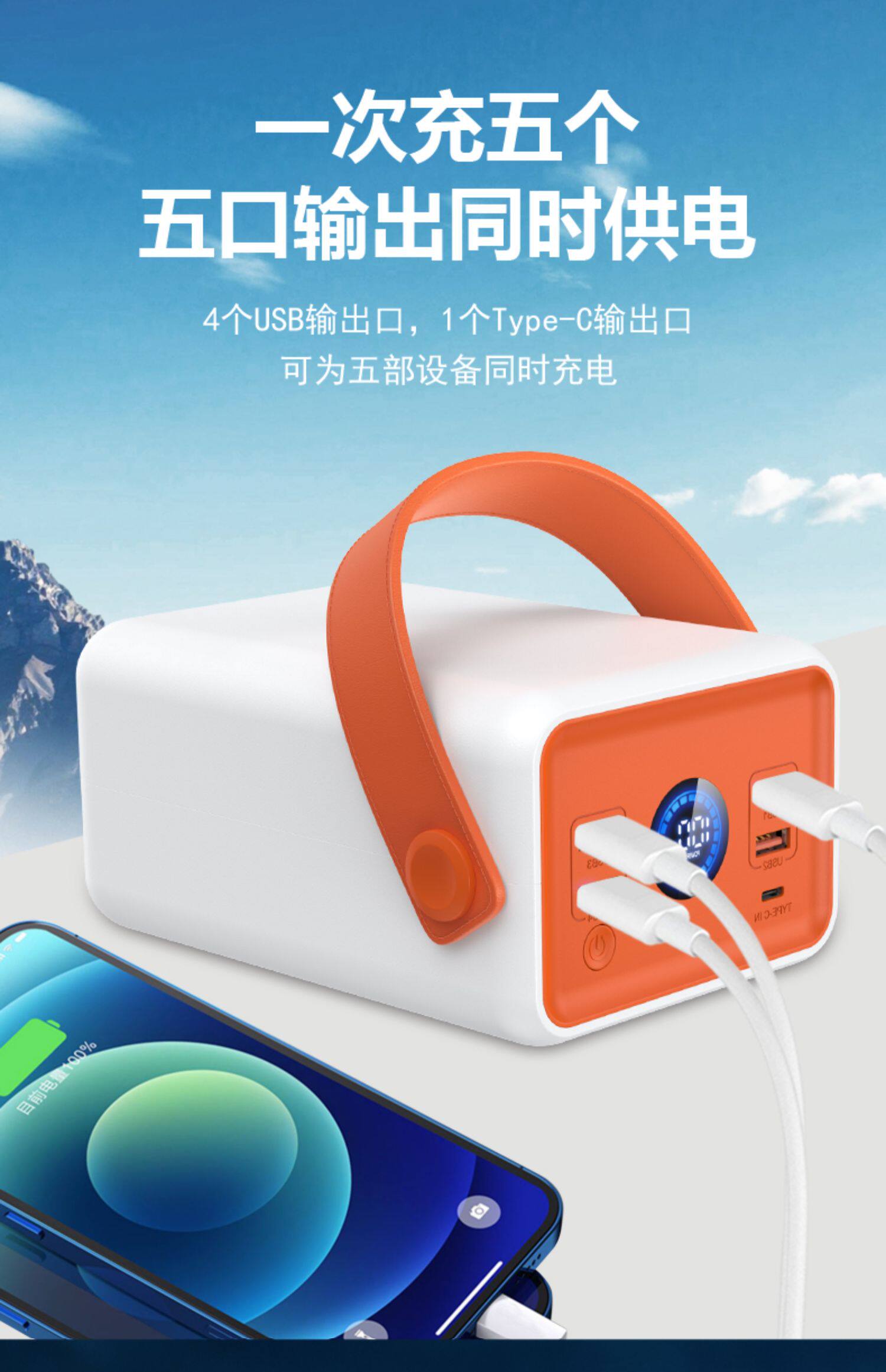 Apple, huawei, вместительный и большой мобильный телефон с зарядкой, дорожный совместимый блок питания для кемпинга, 5W