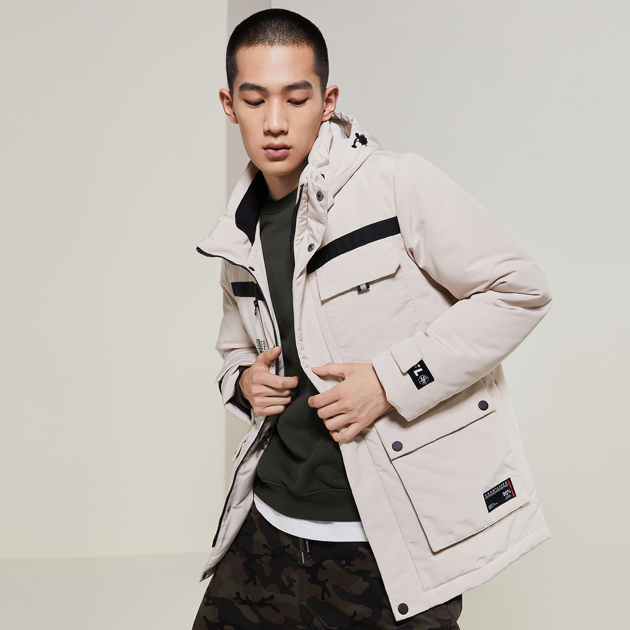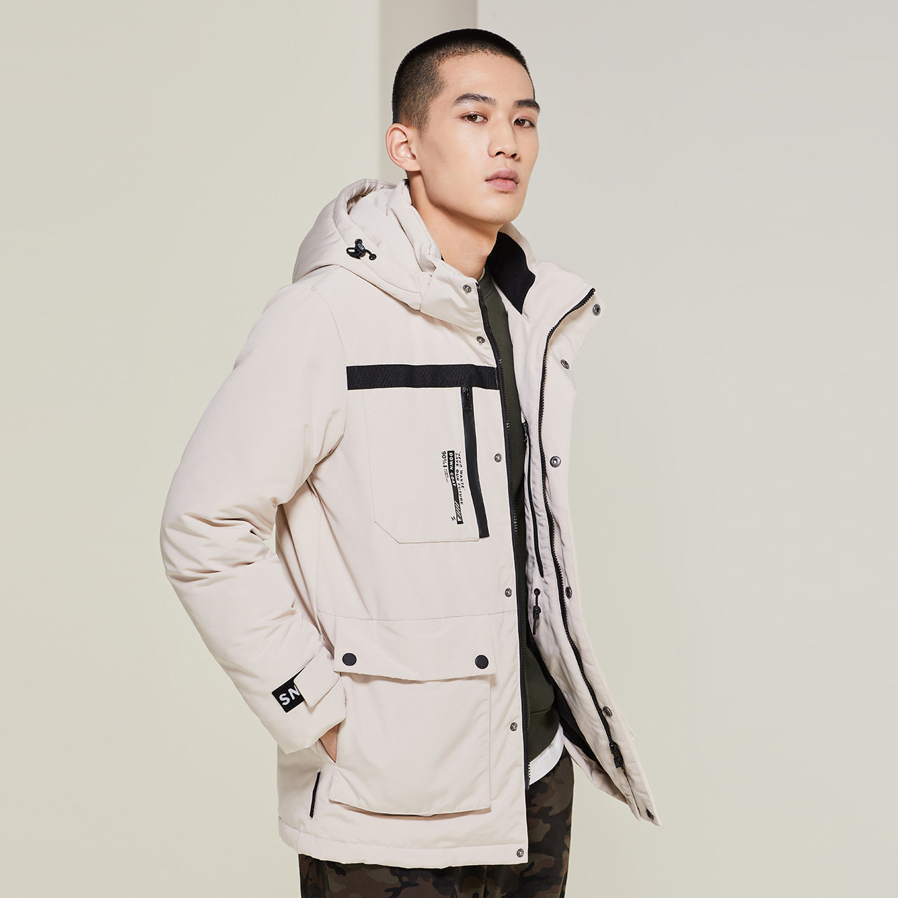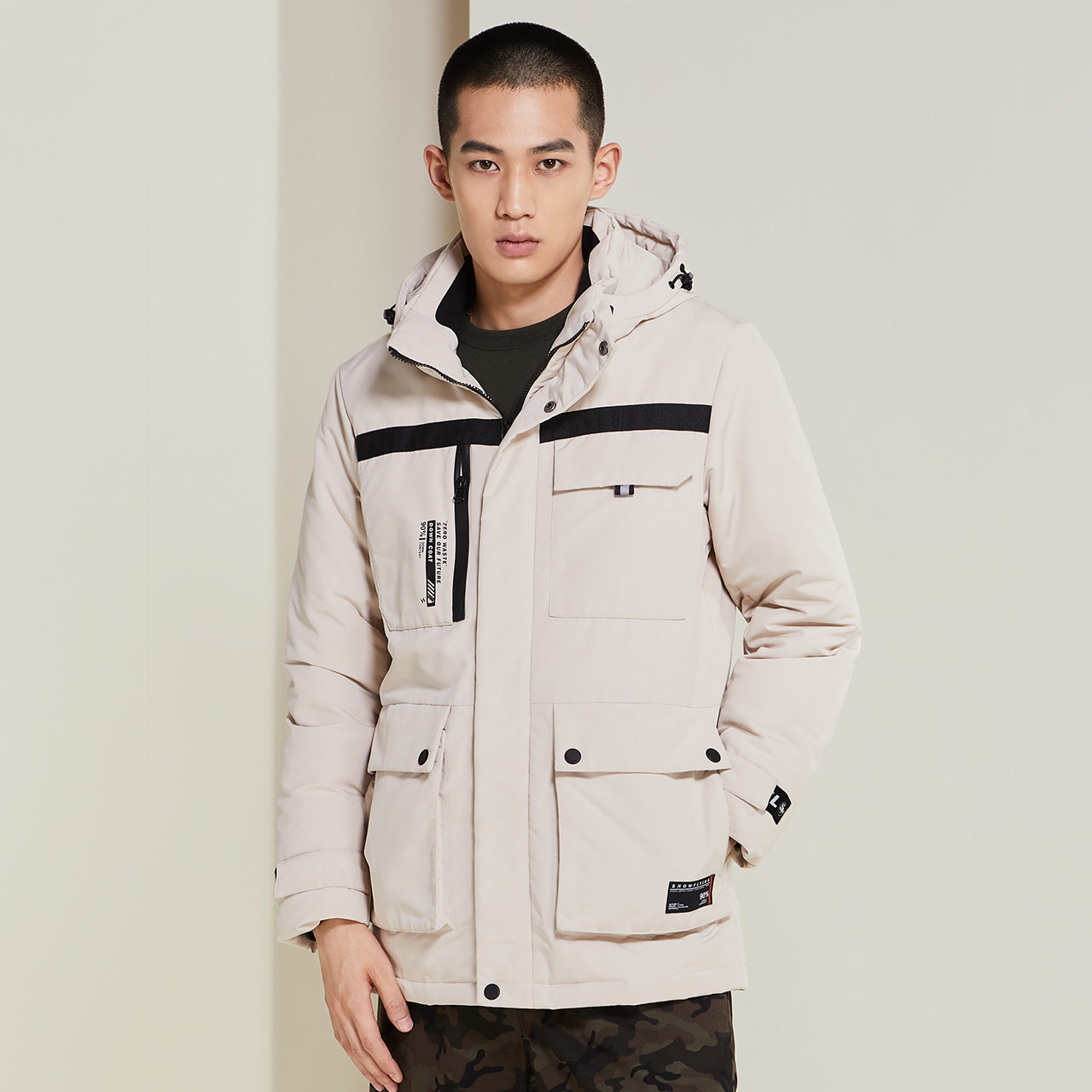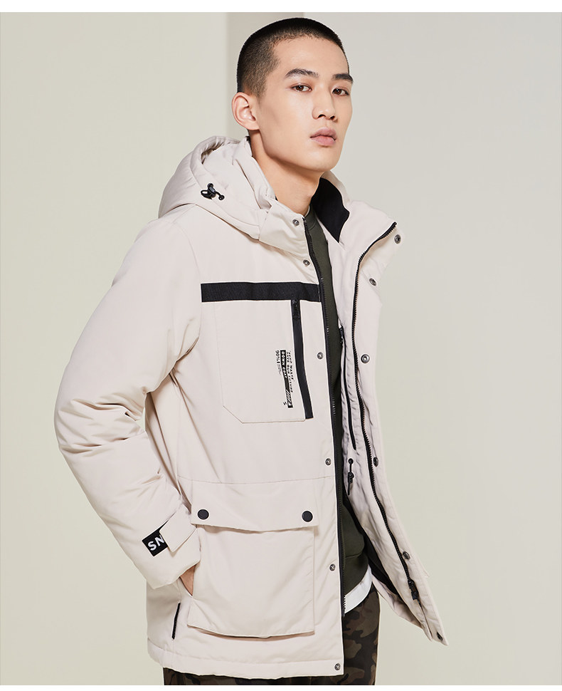 Мужская демисезонная модная шапка с капюшоном, пуховик, средней длины