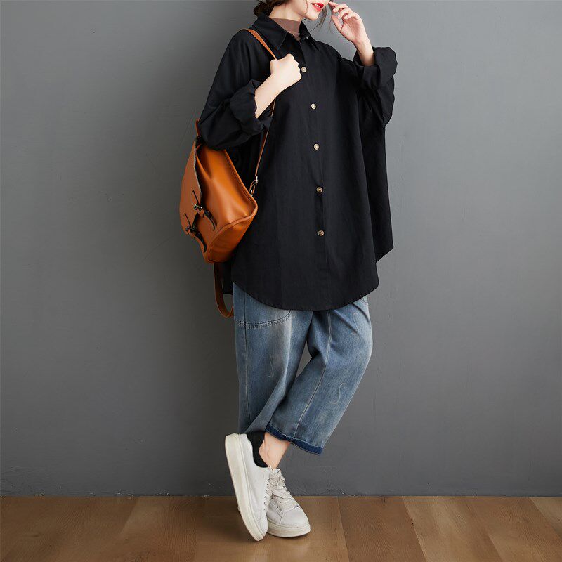 Длинная рубашка, осенний лонгслив, сексуальная куртка, средней длины, в корейском стиле, большой размер