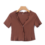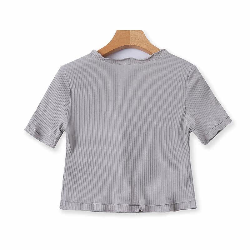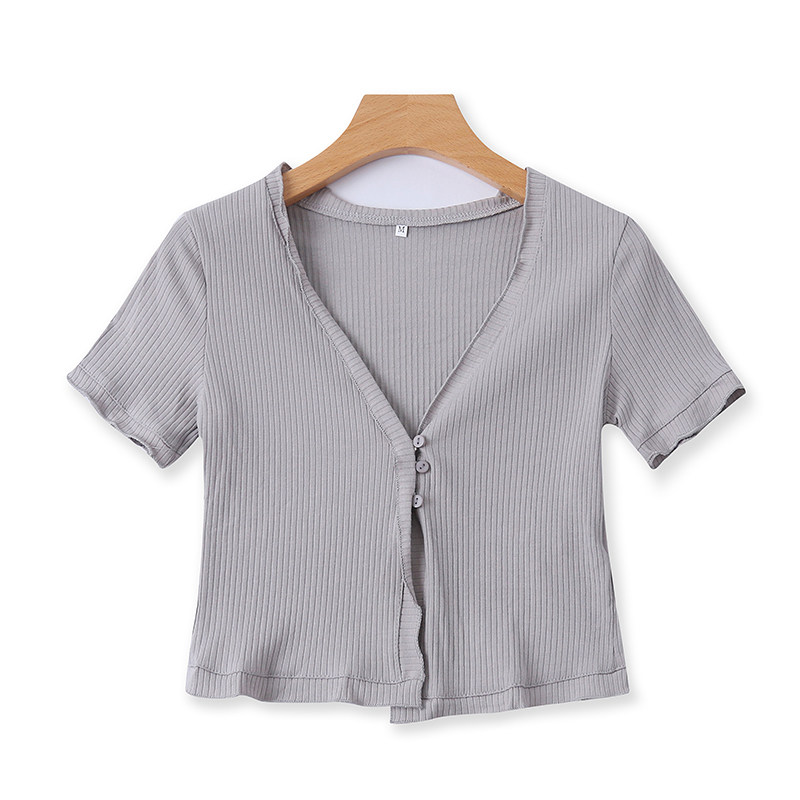 Трикотажная короткая летняя эластичная тонкая футболка, кардиган, короткий рукав