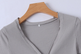 V -neck Новое картон Buckle имеет эластичность на одном слое