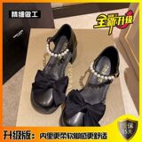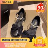 Высокая летняя обувь в английском стиле с бантиком для кожаной обуви, 2024 года, французский стиль, в британском стиле