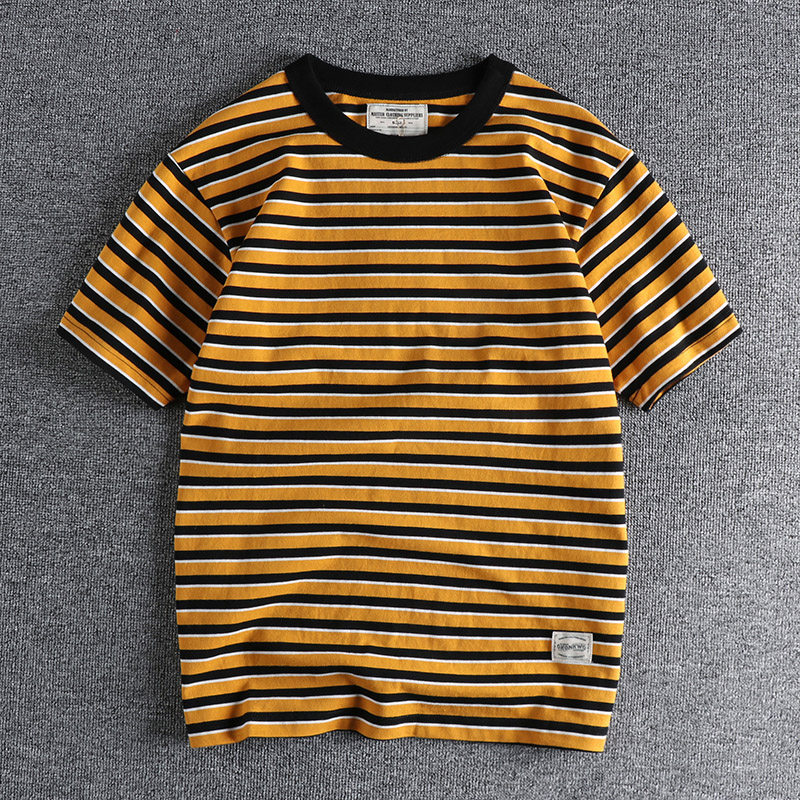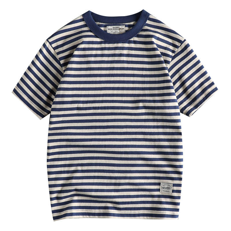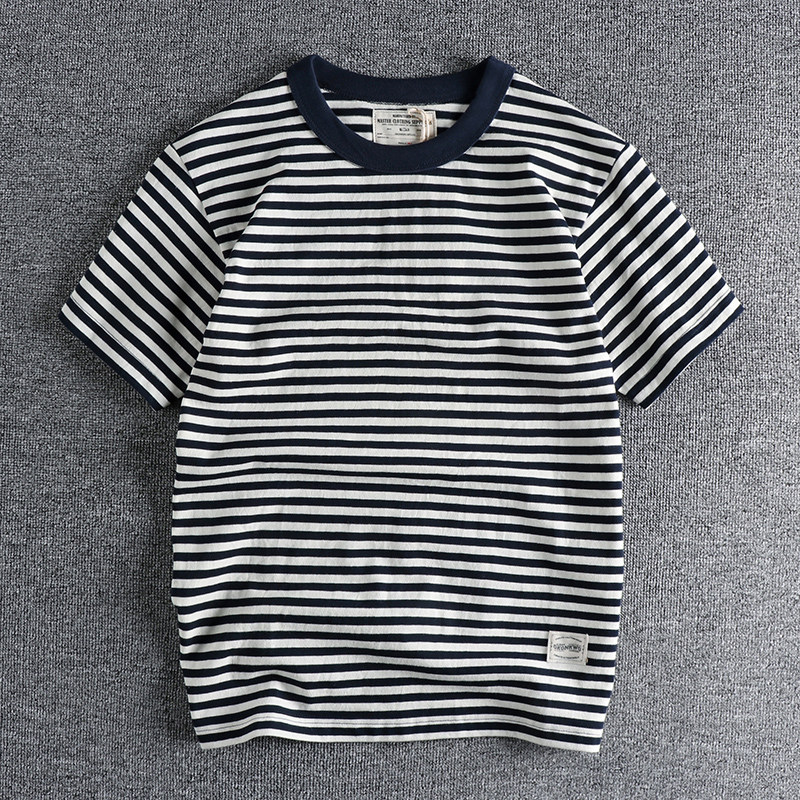 Купить 2024 Ami Kaji Retro Sea Subl Shirt Shirt футболка с коротким рукавом мужчина летняя американская тяжелая полоса