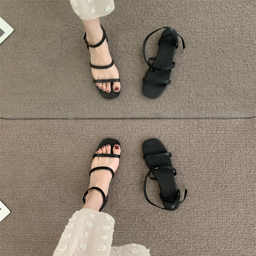 Летние сандалии, плоская подошва обувь, тапочки, французский ретро стиль