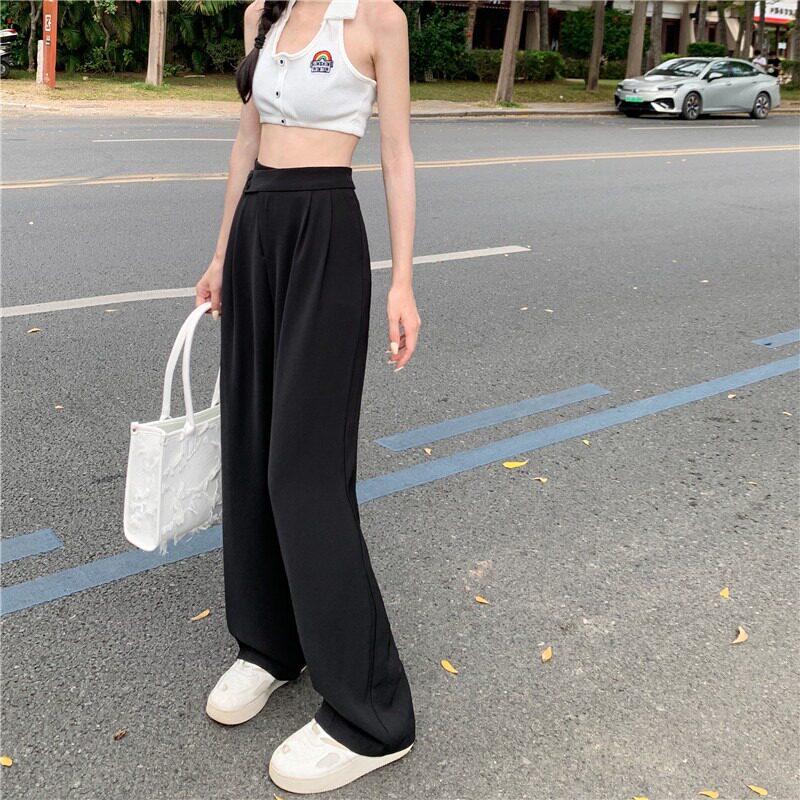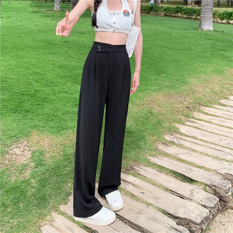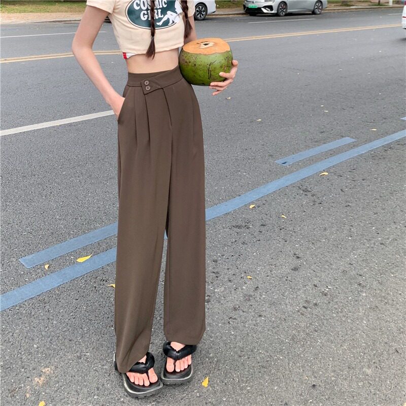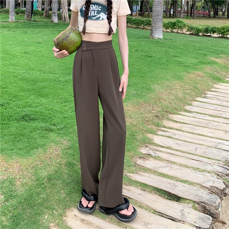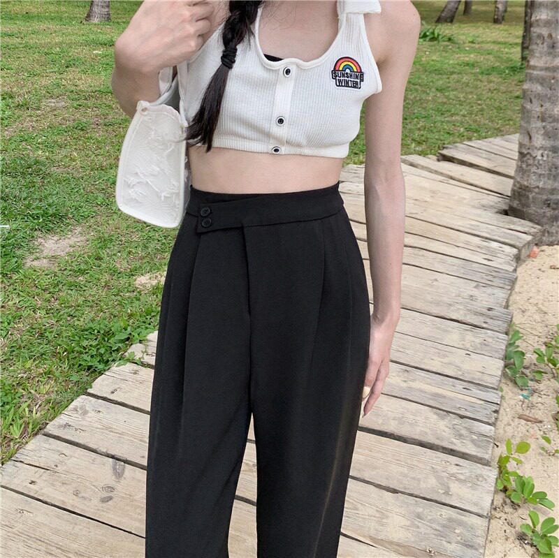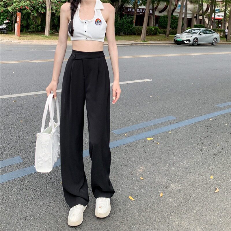 Ретро летние тонкие приталенные штаны, высокая талия, свободный прямой крой