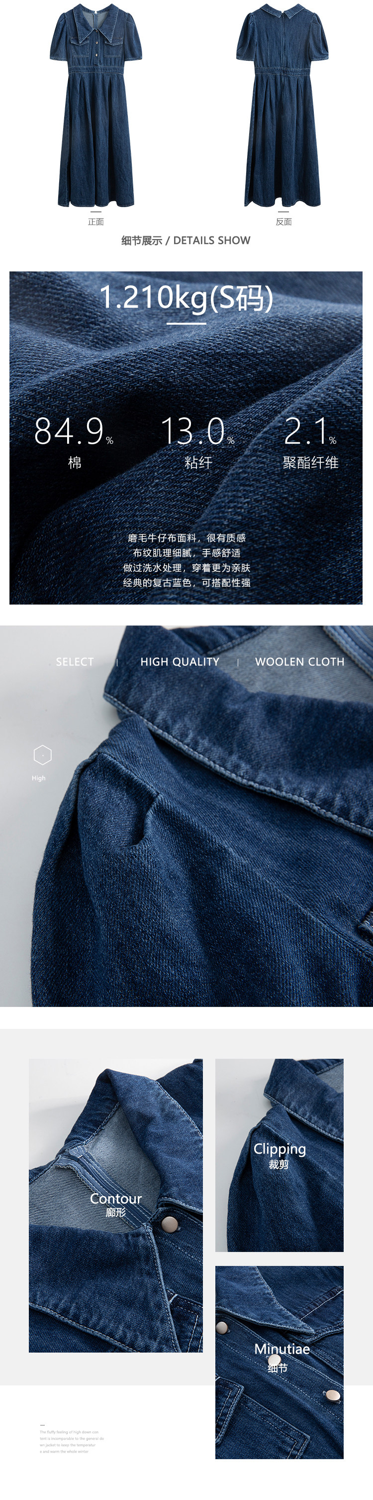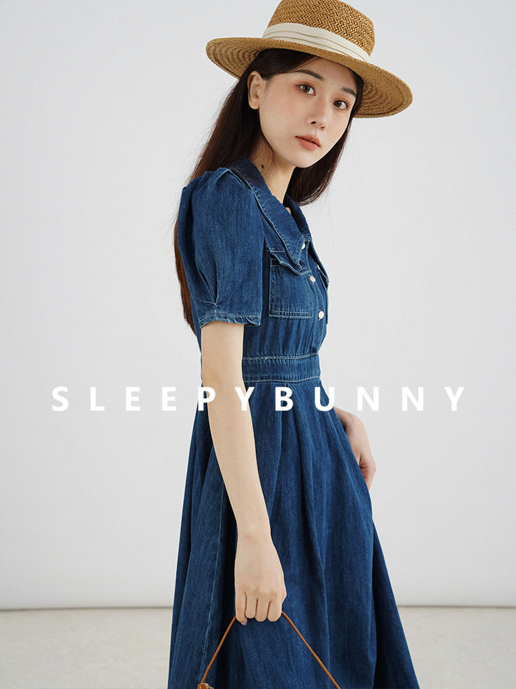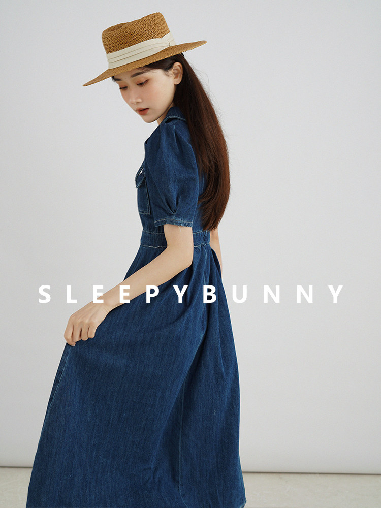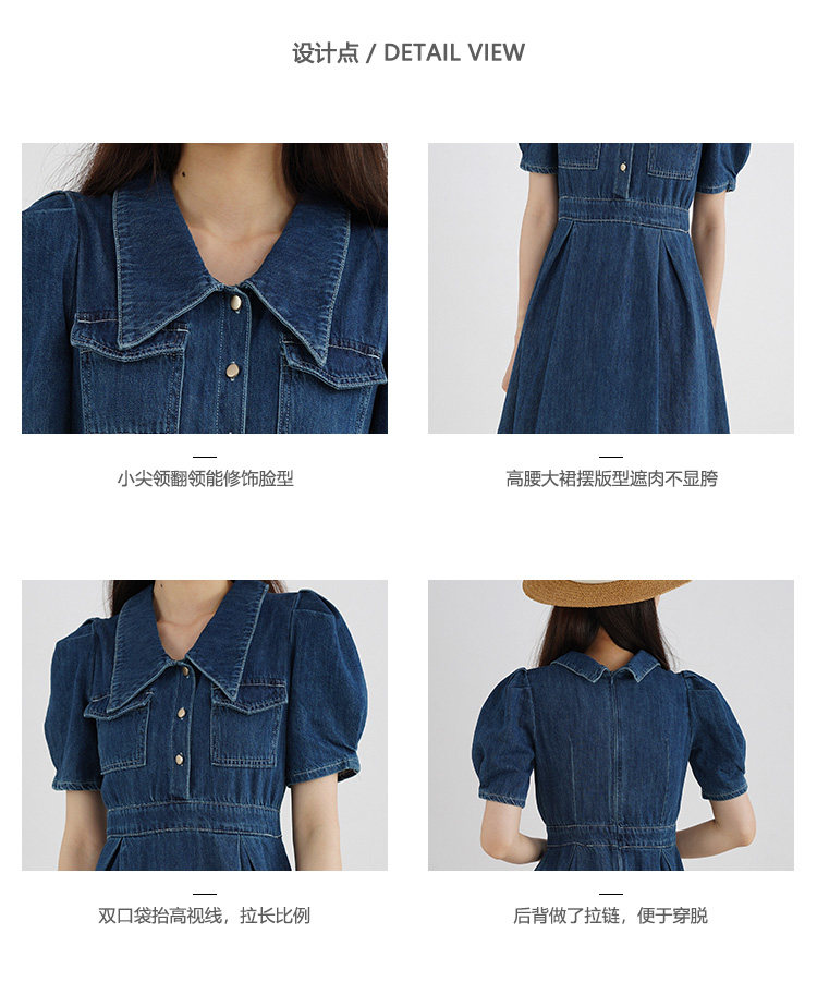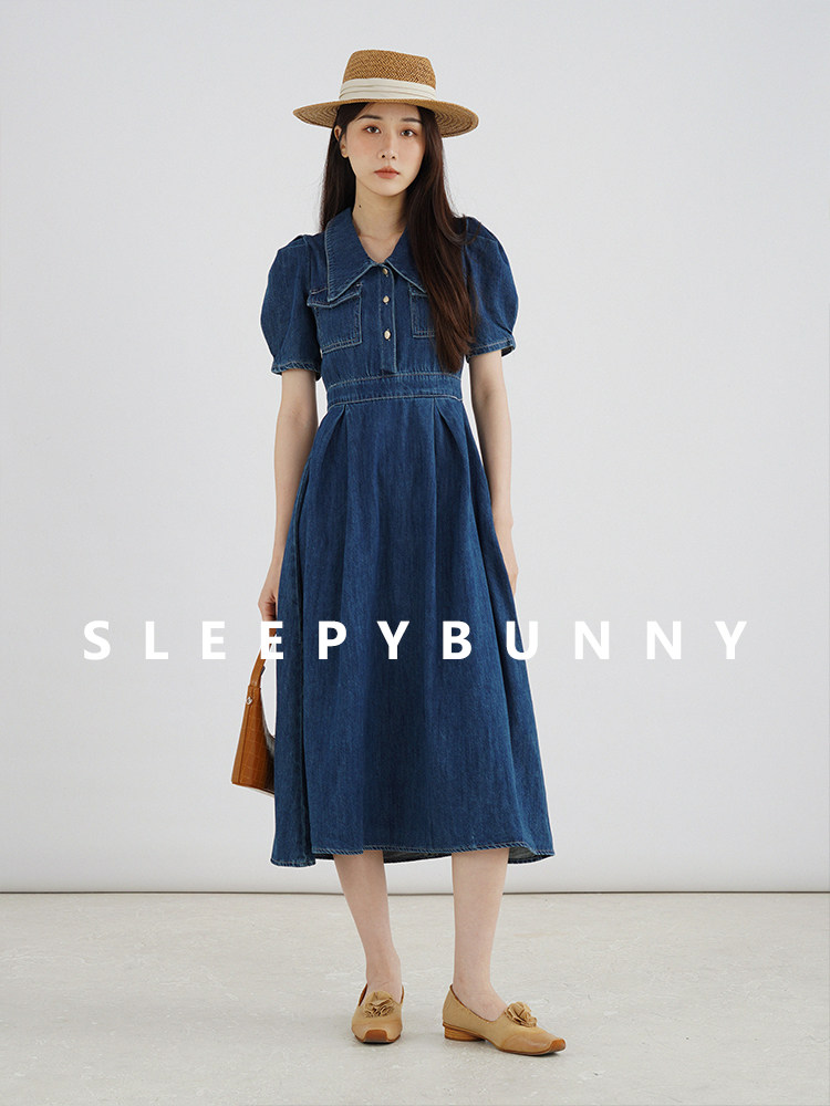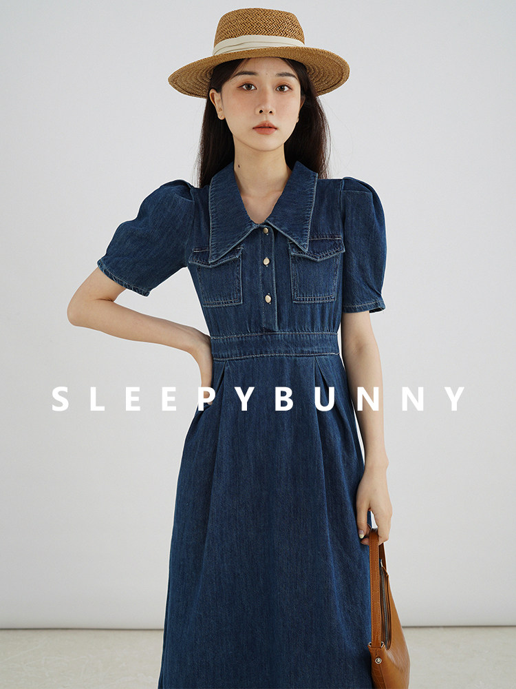 Джинсовое летнее ретро платье, элегантный приталенный корсет, длинная юбка, рукава фонарики, А-силуэт, средней длины