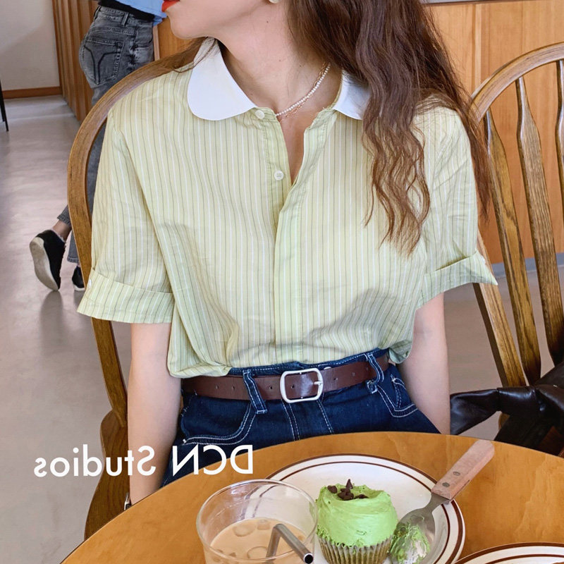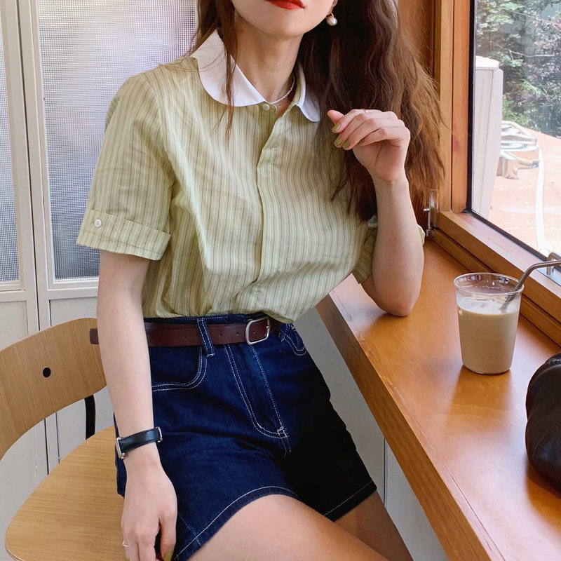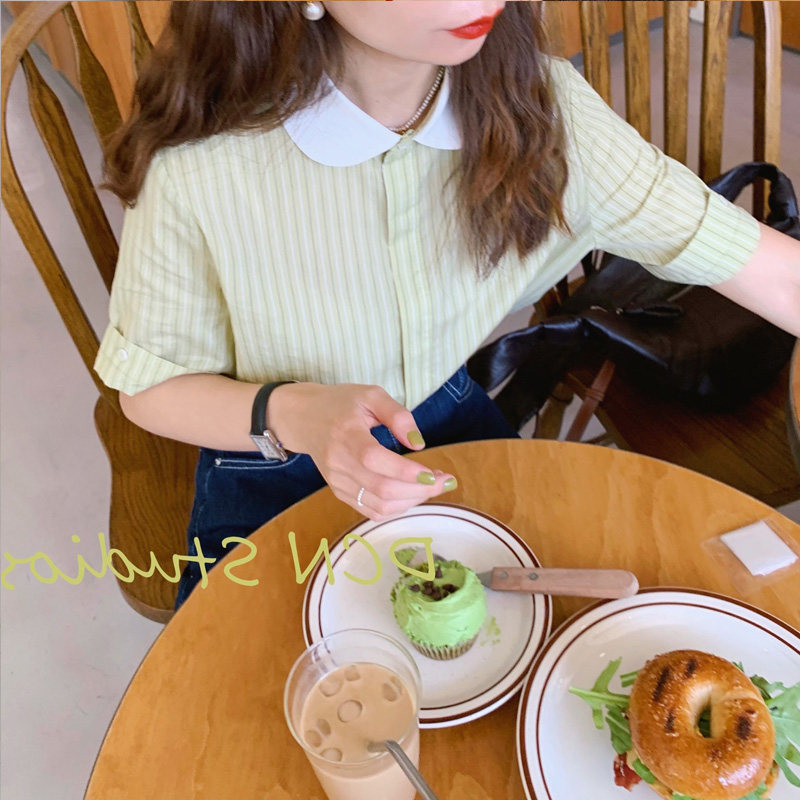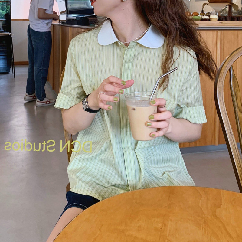 Зеленая кукла, летняя тонкая милая рубашка, кукольный воротник, французский стиль