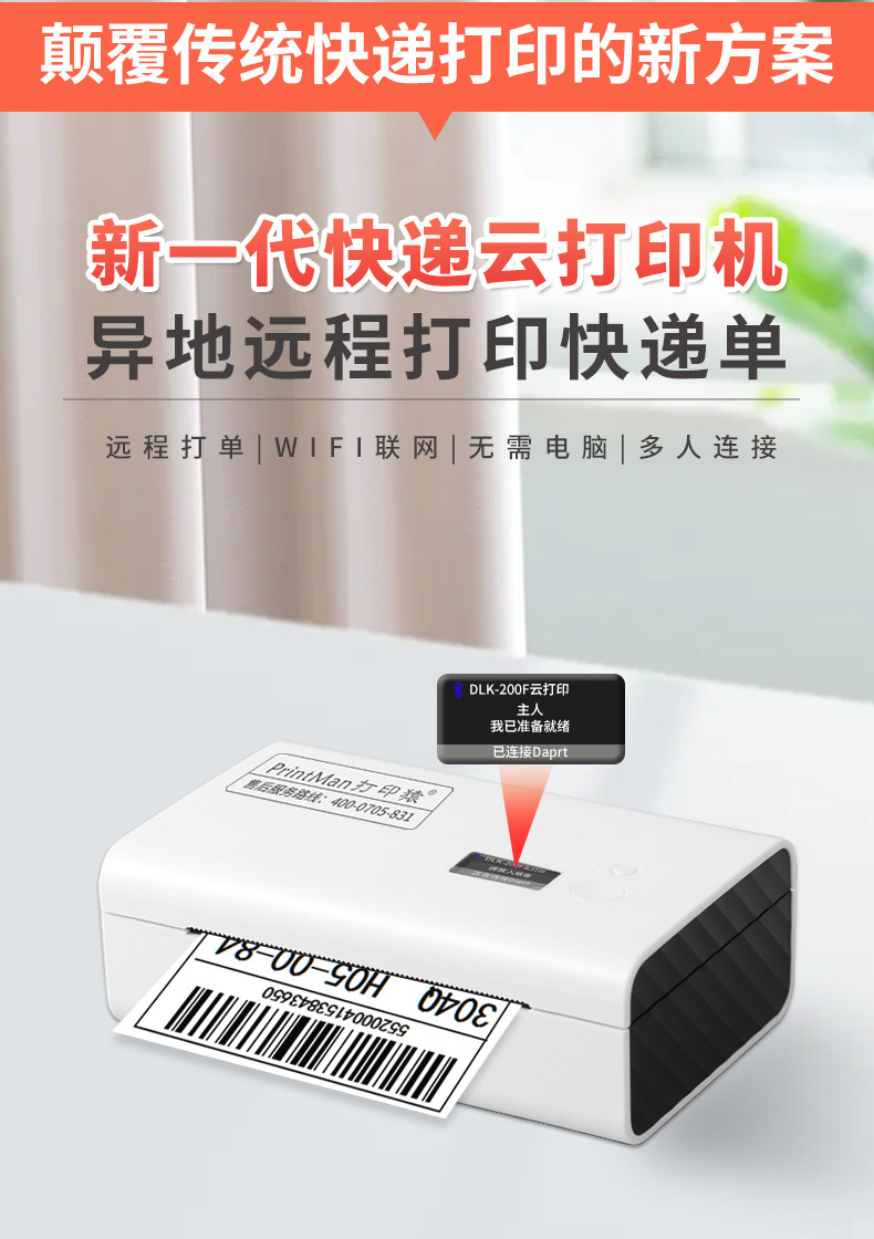Печать APE DLK-200F Express Cloud Printer Мобильный телефон различный экспресс одно беспроводная нагревательная метка Электронная одиночная одиночная малая печатная машина W5
