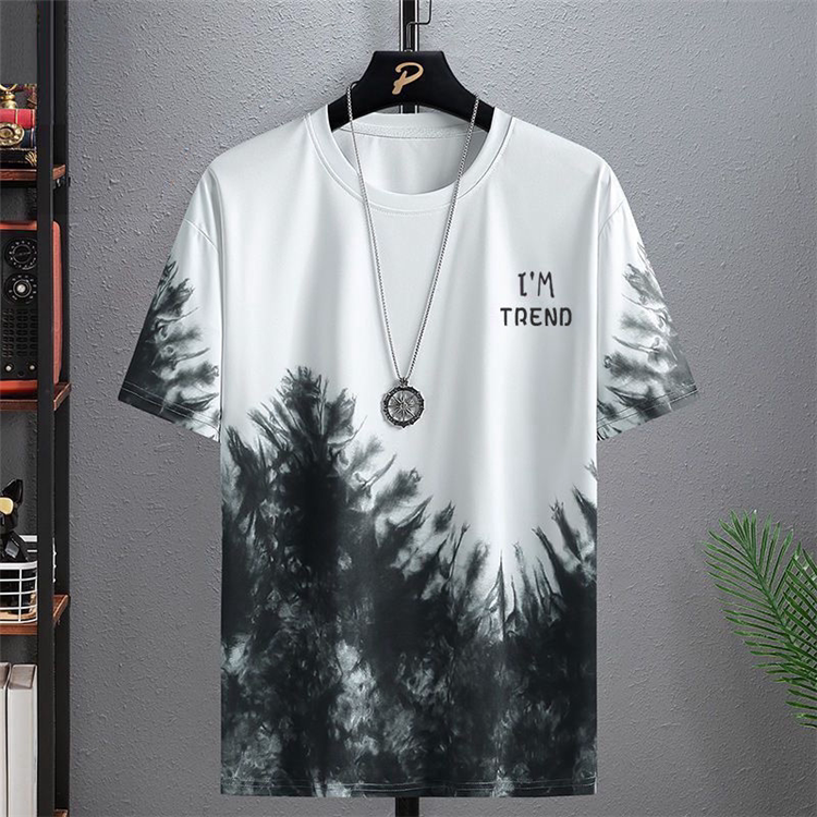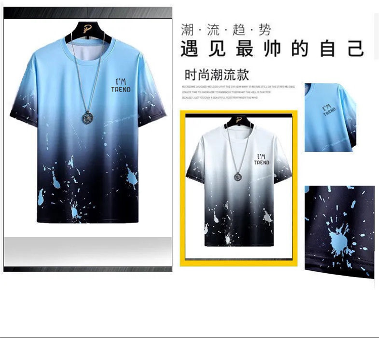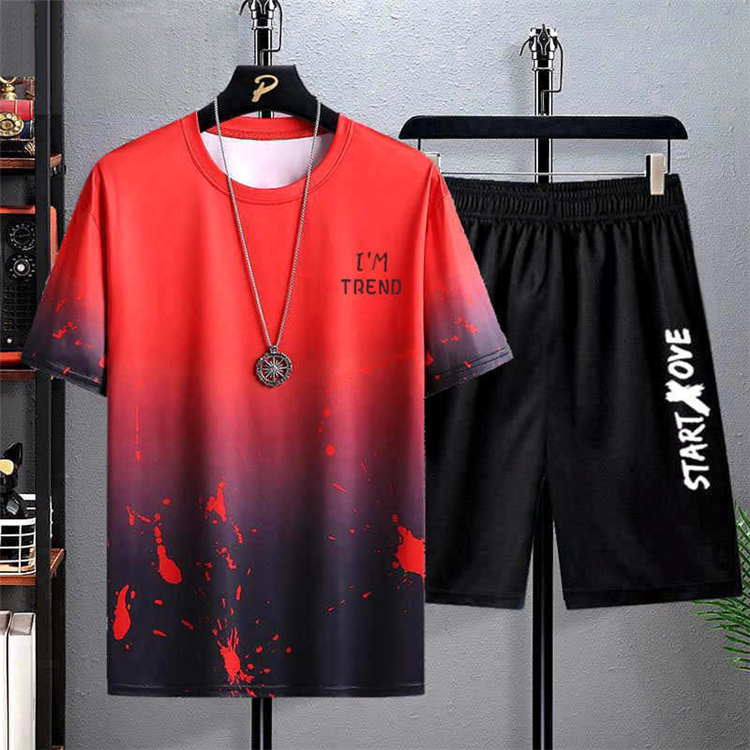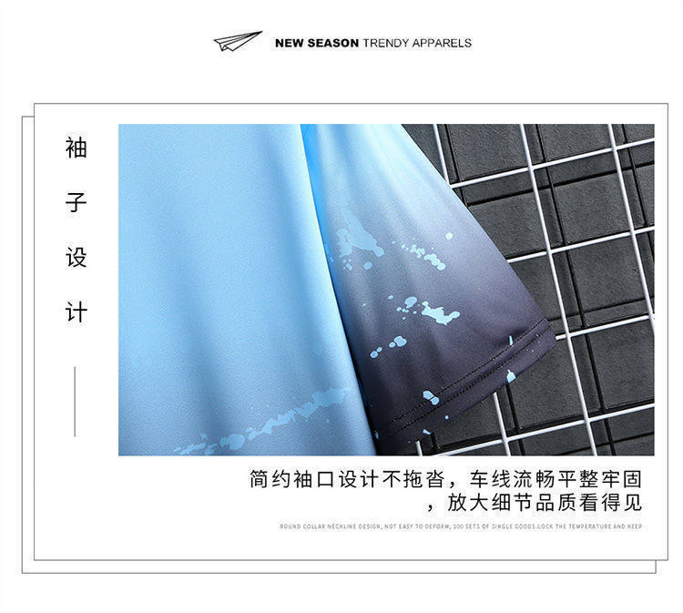 Летняя модная универсальная шелковая футболка с коротким рукавом, комплект, шорты для отдыха, градиент