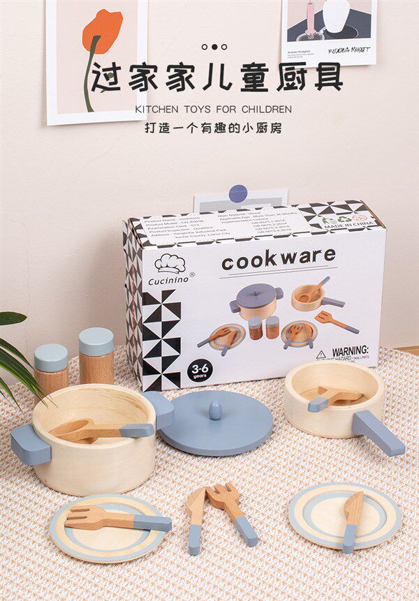 Деревянная семейная реалистичная кухонная утварь для мальчиков и девочек, игрушка