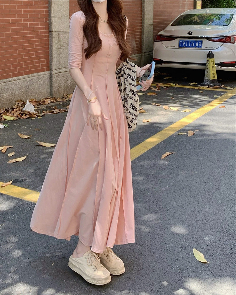 Осенняя небольшая дизайнерская длинная юбка, ростомер, розовое платье, 2023, французский стиль, тренд сезона, облегающий крой, изысканный стиль