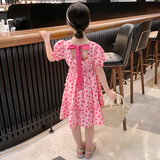 Хлопковое платье, юбка, летняя одежда, детский летний наряд маленькой принцессы, коллекция 2022, в западном стиле, детская одежда, цветочный принт