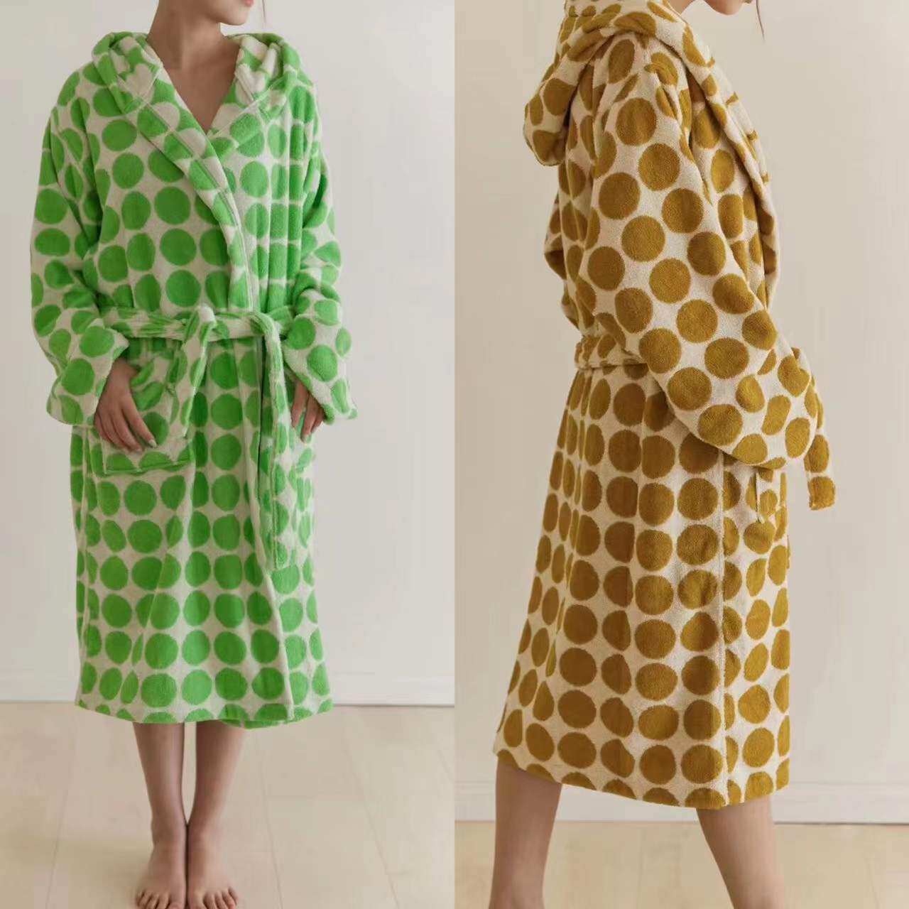 Ретро хлопковый банный халат с капюшоном, коллекция 2022, из ворсистого хлопка, для влюбленных