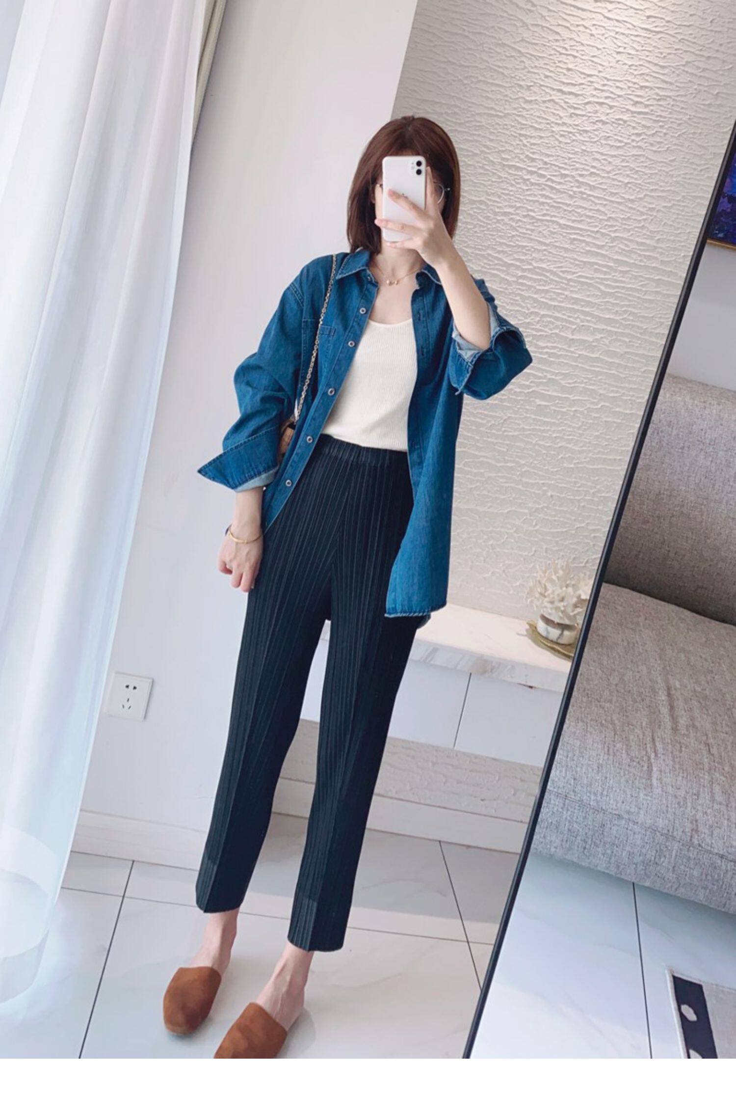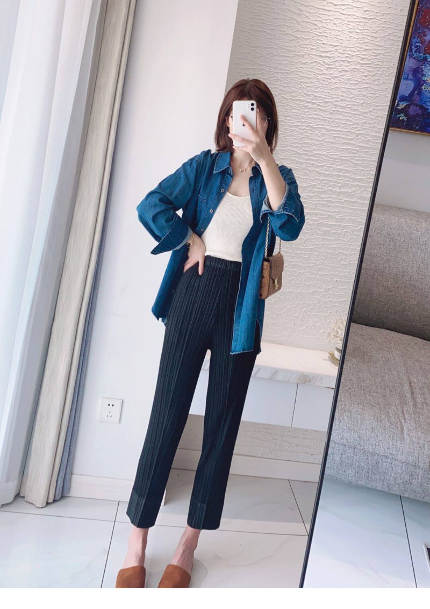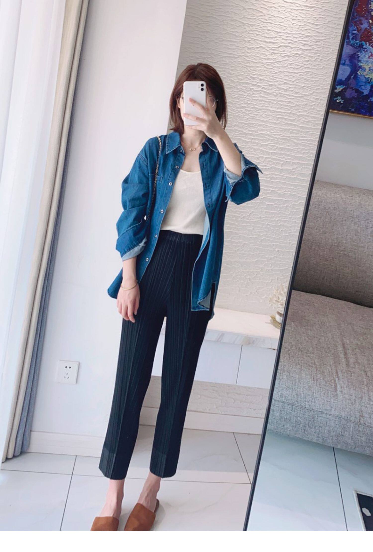 Прохладные дышащие эластичные японские штаны, повседневные брюки, свободный прямой крой