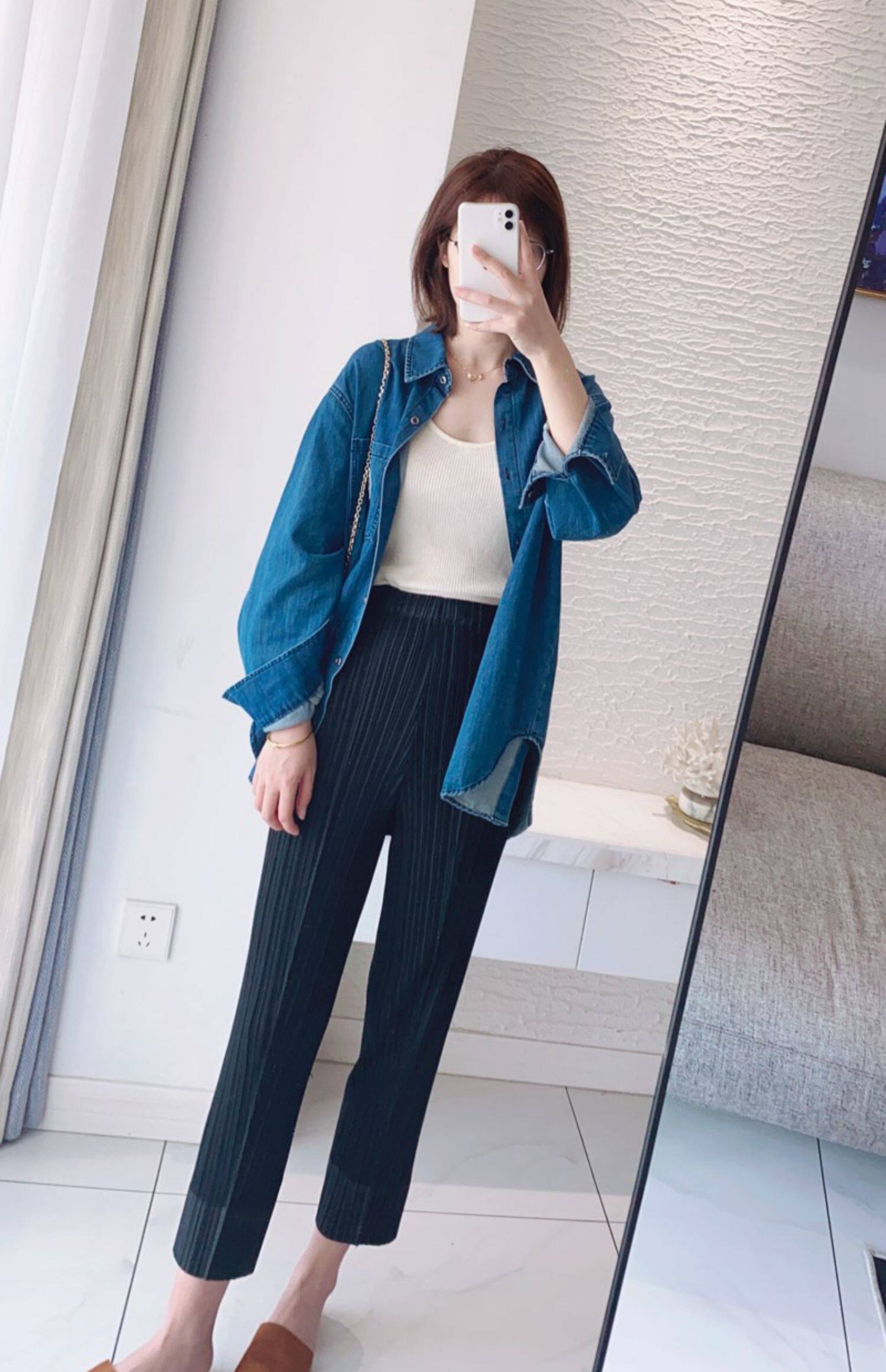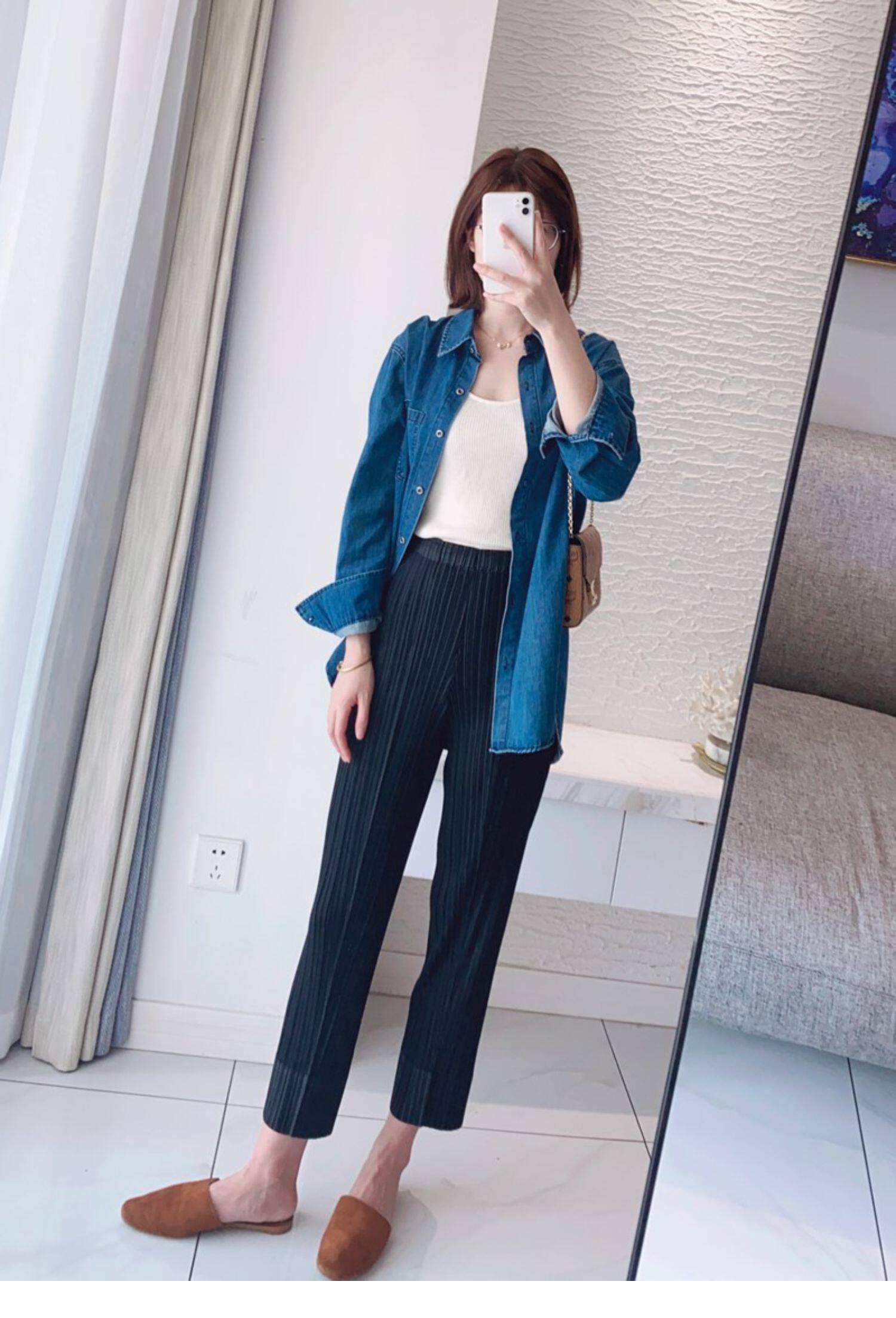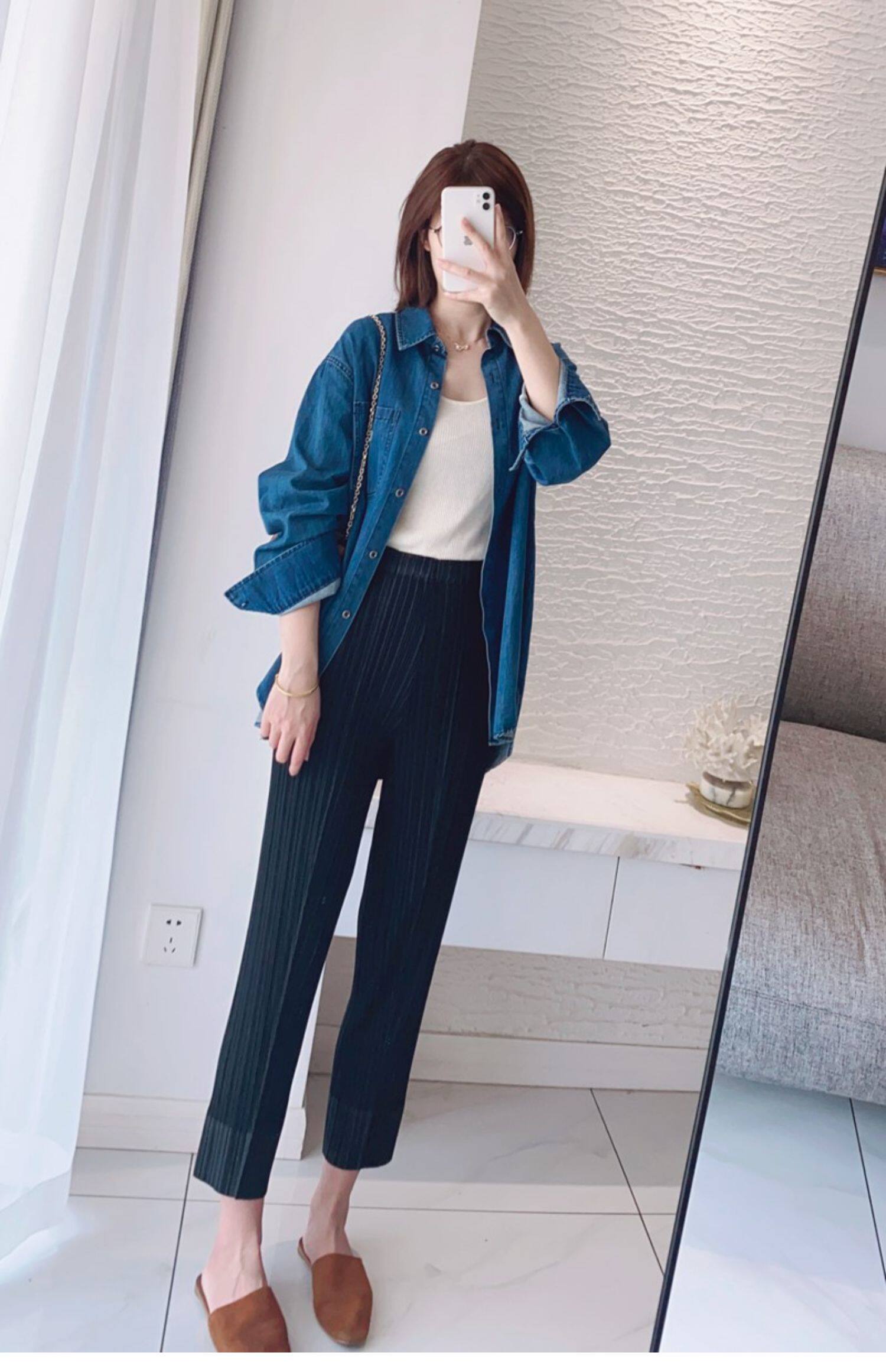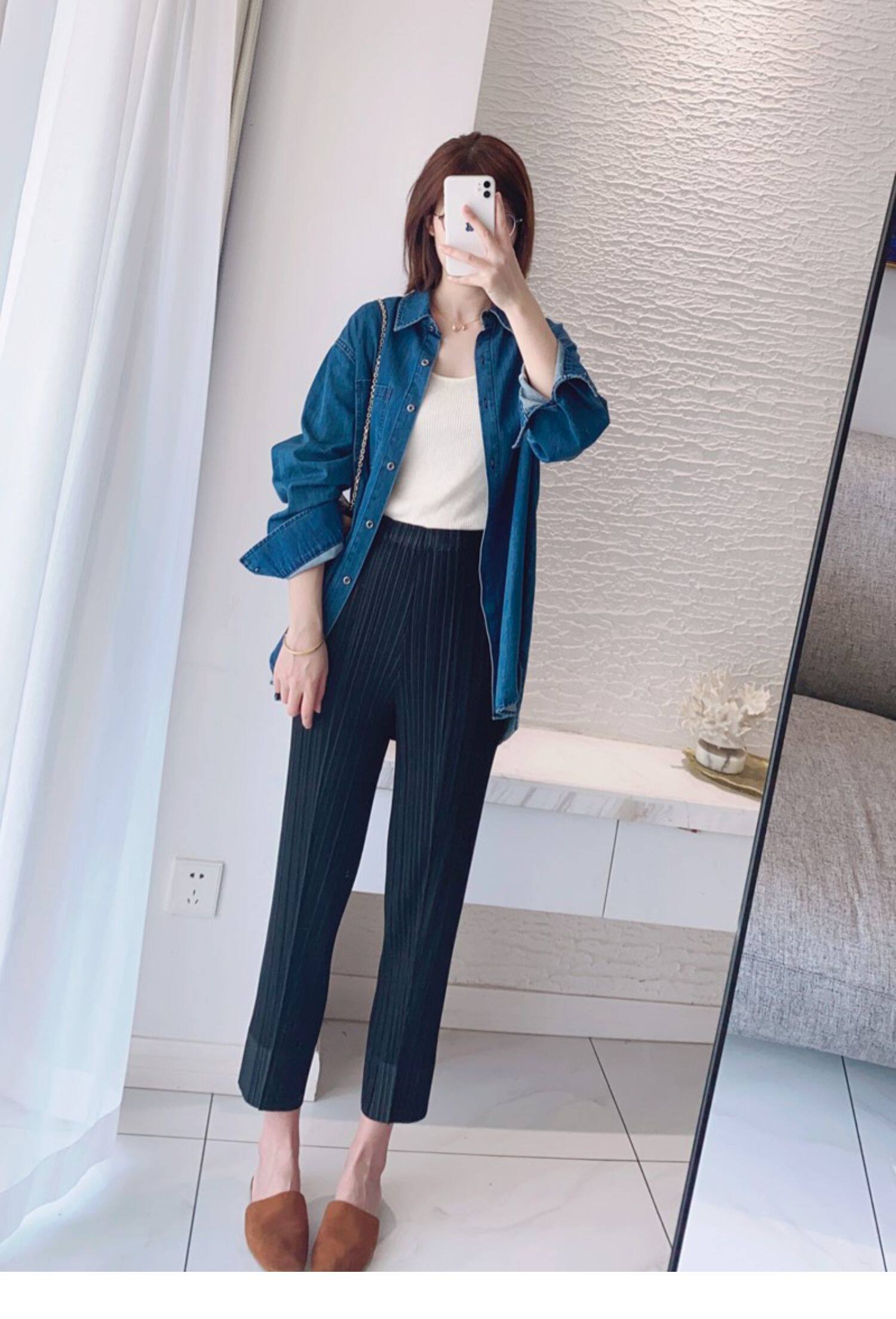 Прохладные дышащие эластичные японские штаны, повседневные брюки, свободный прямой крой