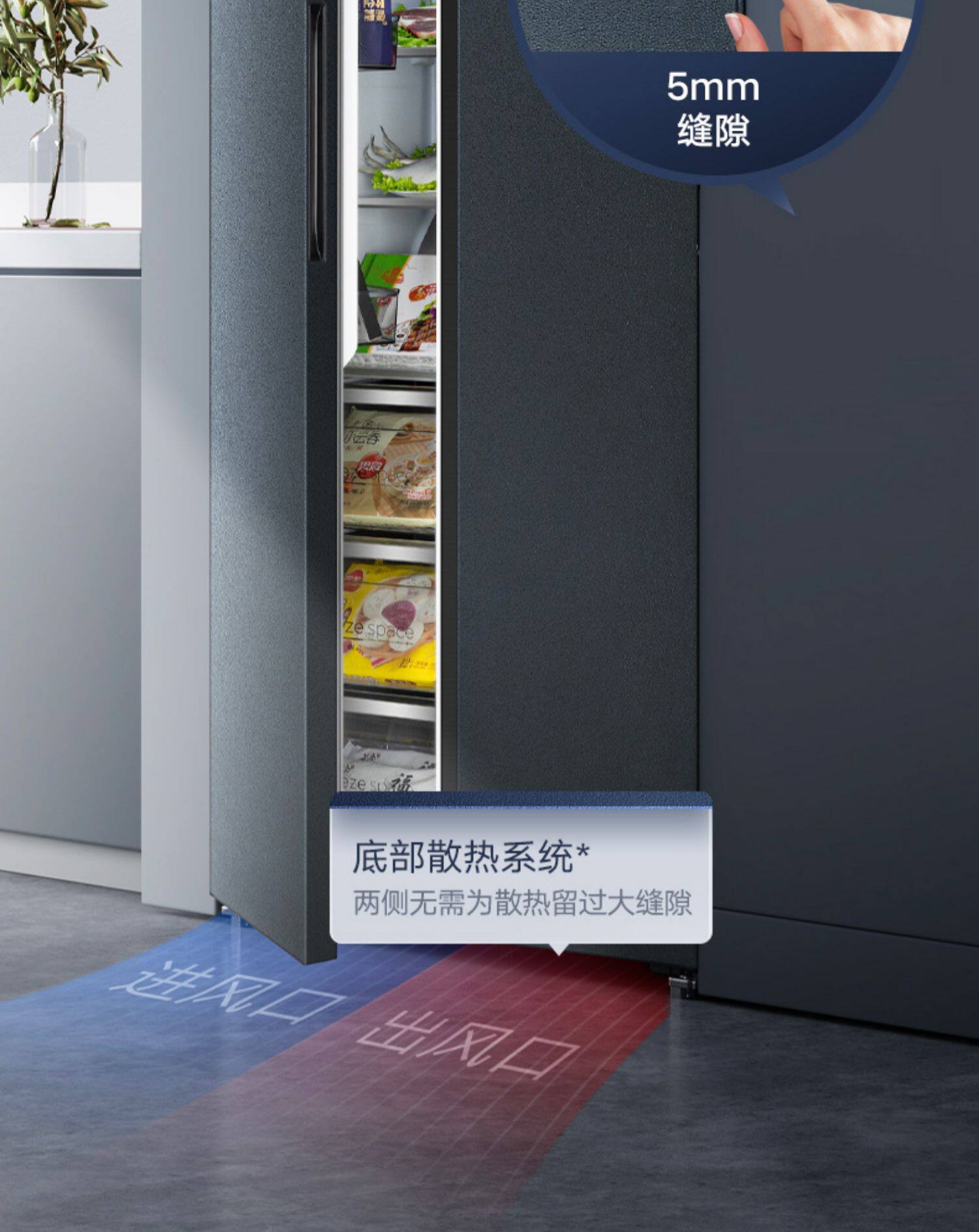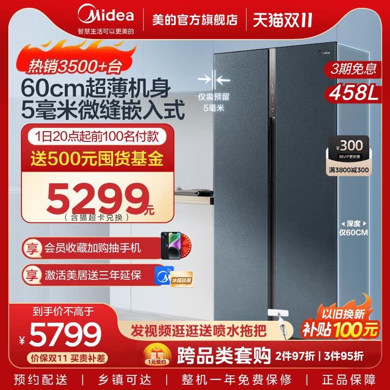 Midea M60cm Ultra -Thin 458/456 Пассажирский с нулевым с нулевым ветер и холод без мороза