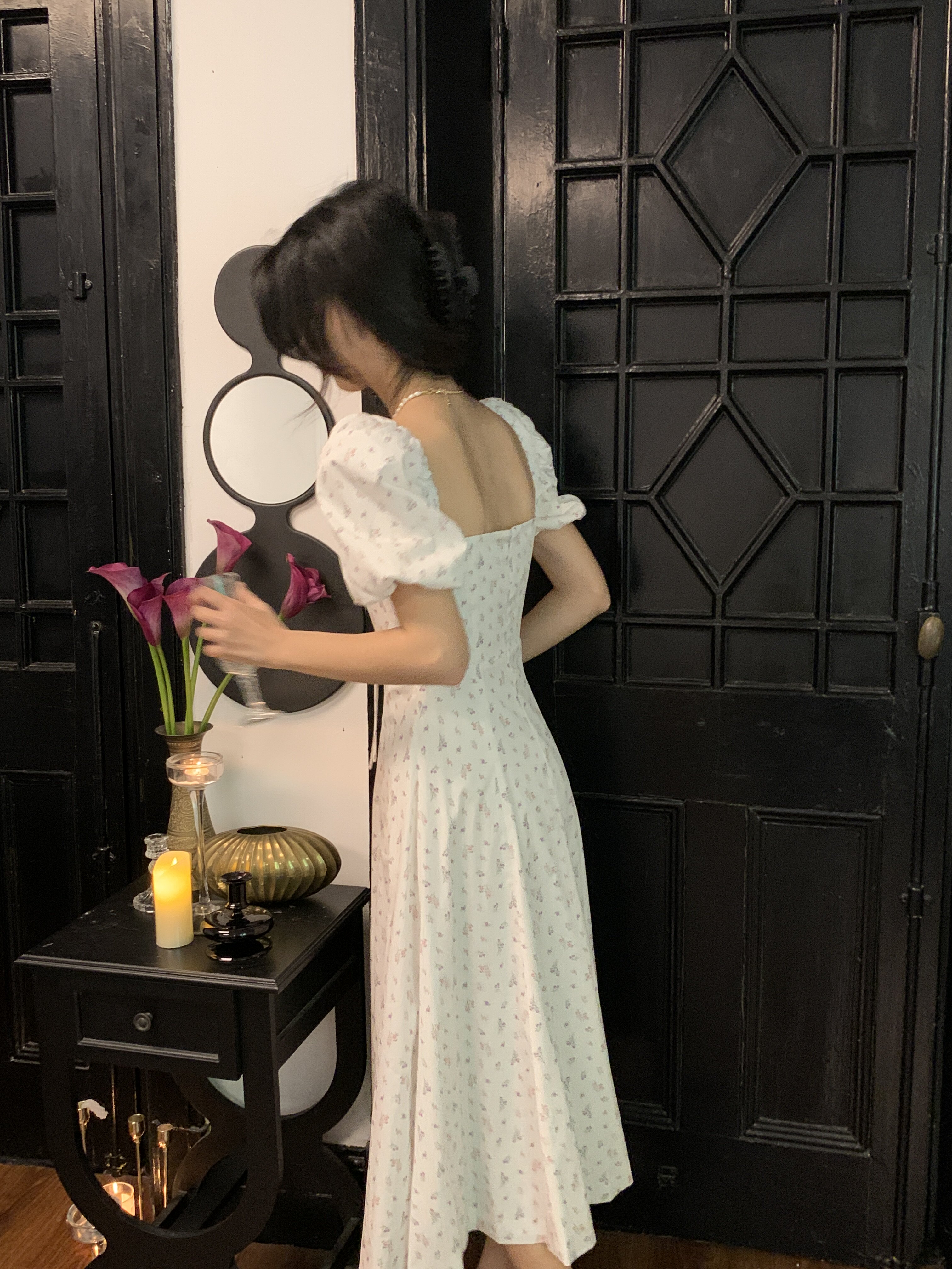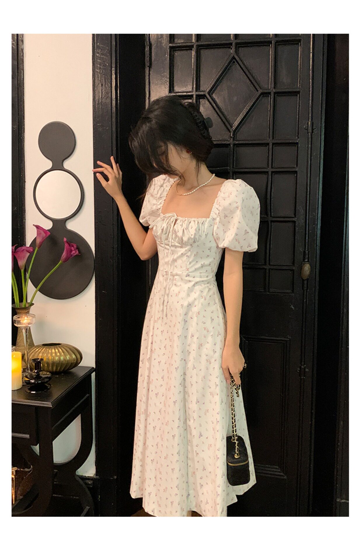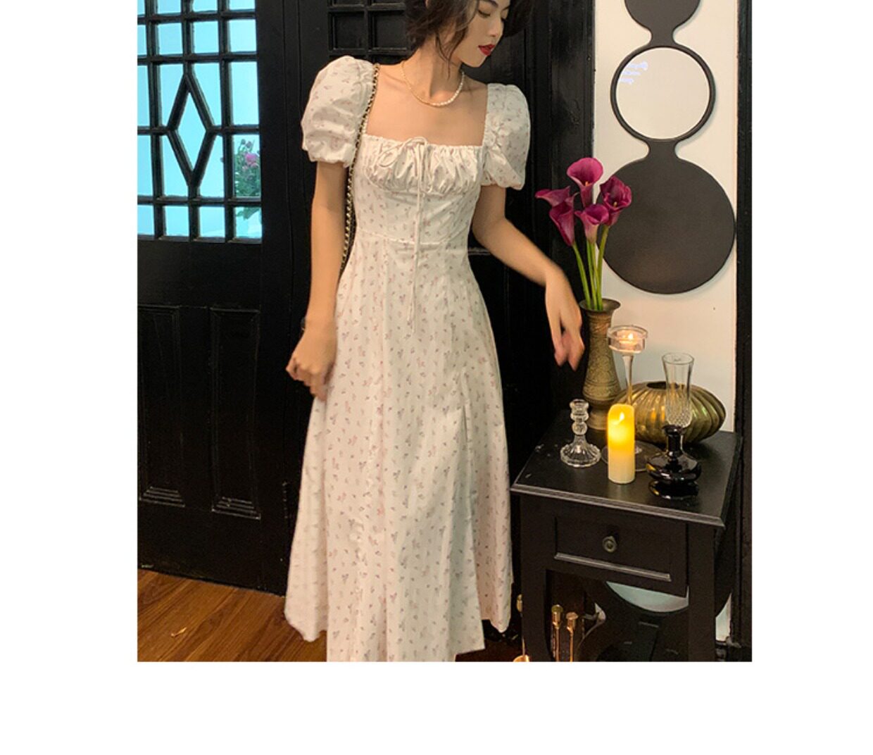 Ретро летнее платье, приталенный корсет, длинная юбка, французский стиль, квадратный вырез, длина макси