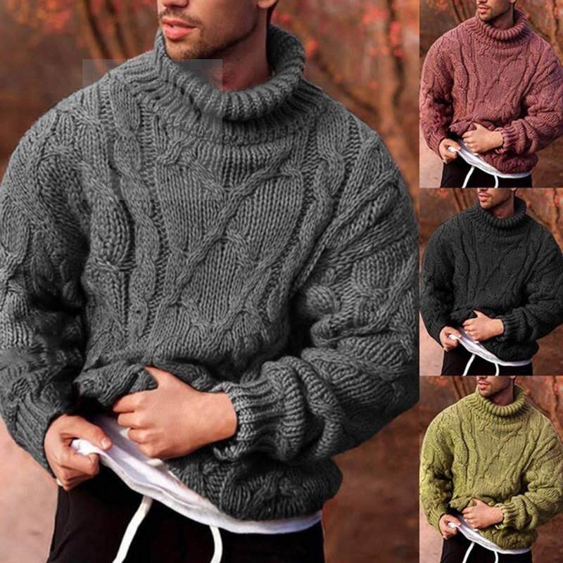 -Осенне-зимняя новая повседневная мужская водолазка с витым цветком.