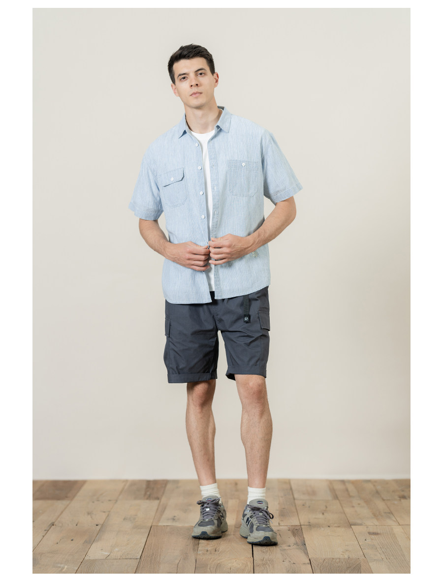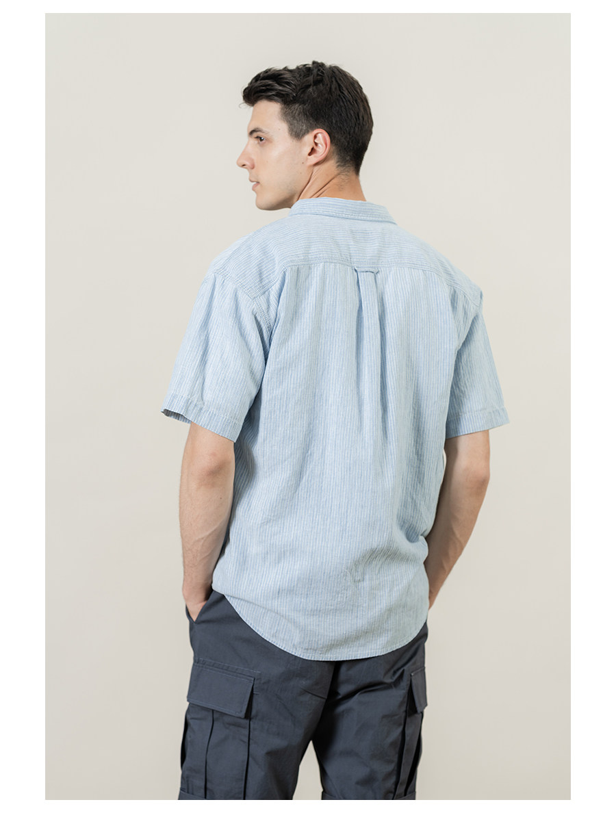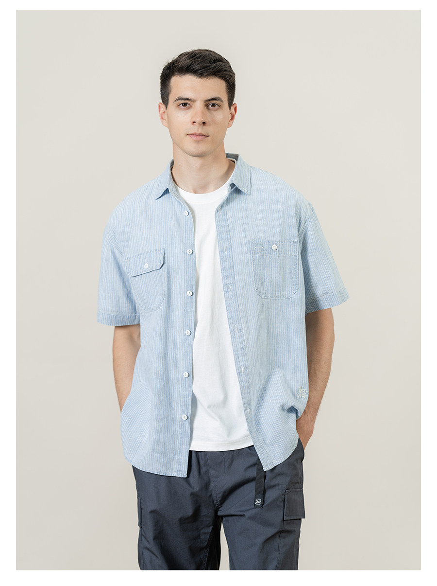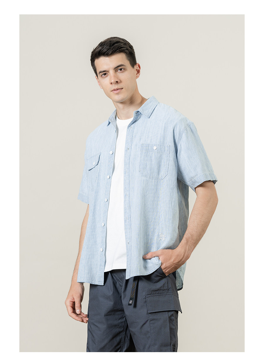 Рубашка, свободный крой, с вышивкой, из хлопка и льна