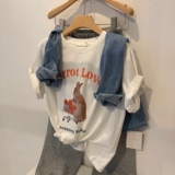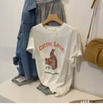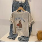 Летняя ретро мультяшная хлопковая футболка с коротким рукавом с круглым воротником, в американском стиле, 2024 года, свободный крой