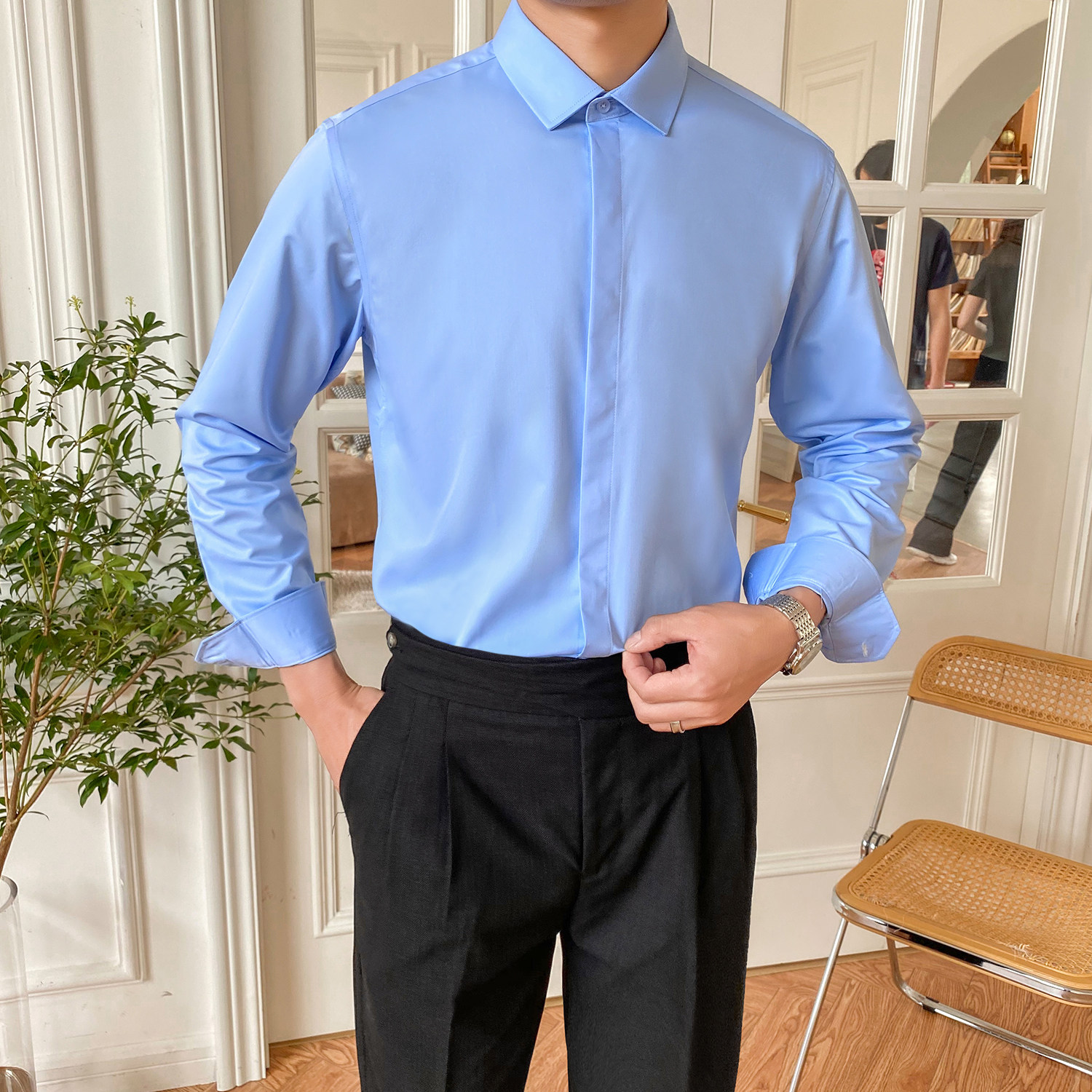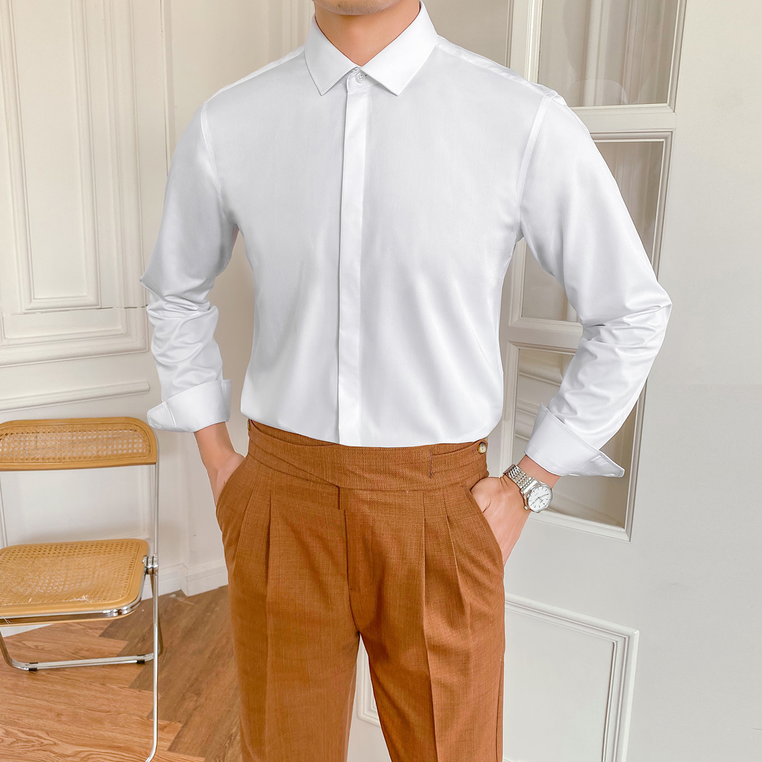 Летняя тонкая рубашка, в корейском стиле, облегающий крой