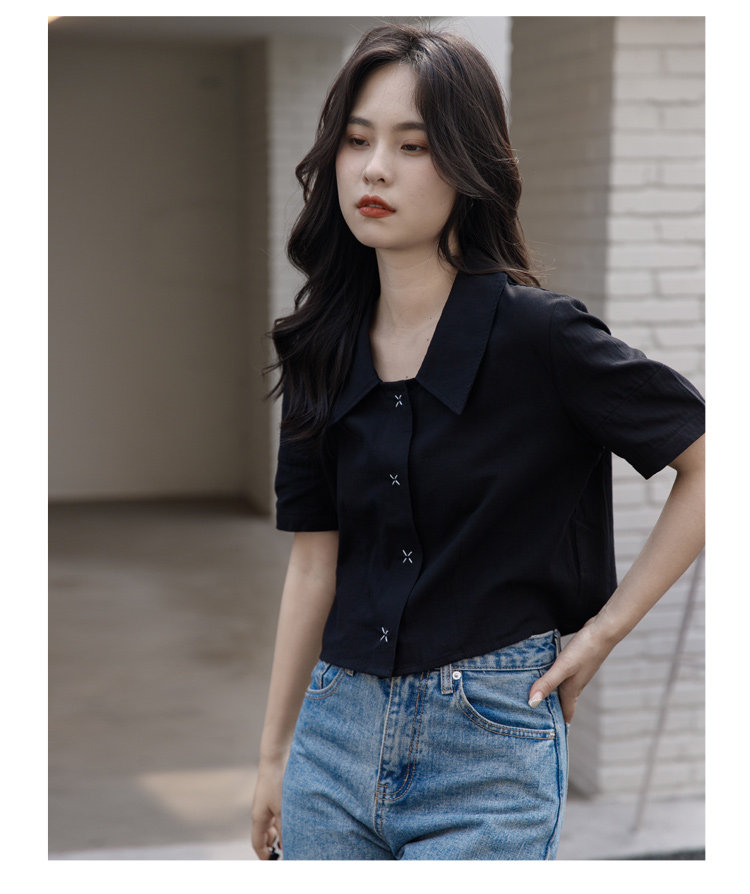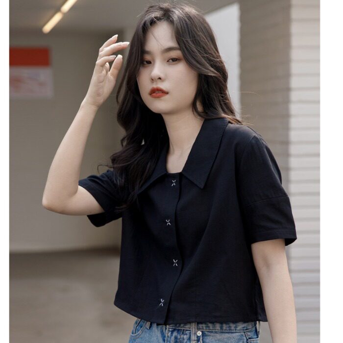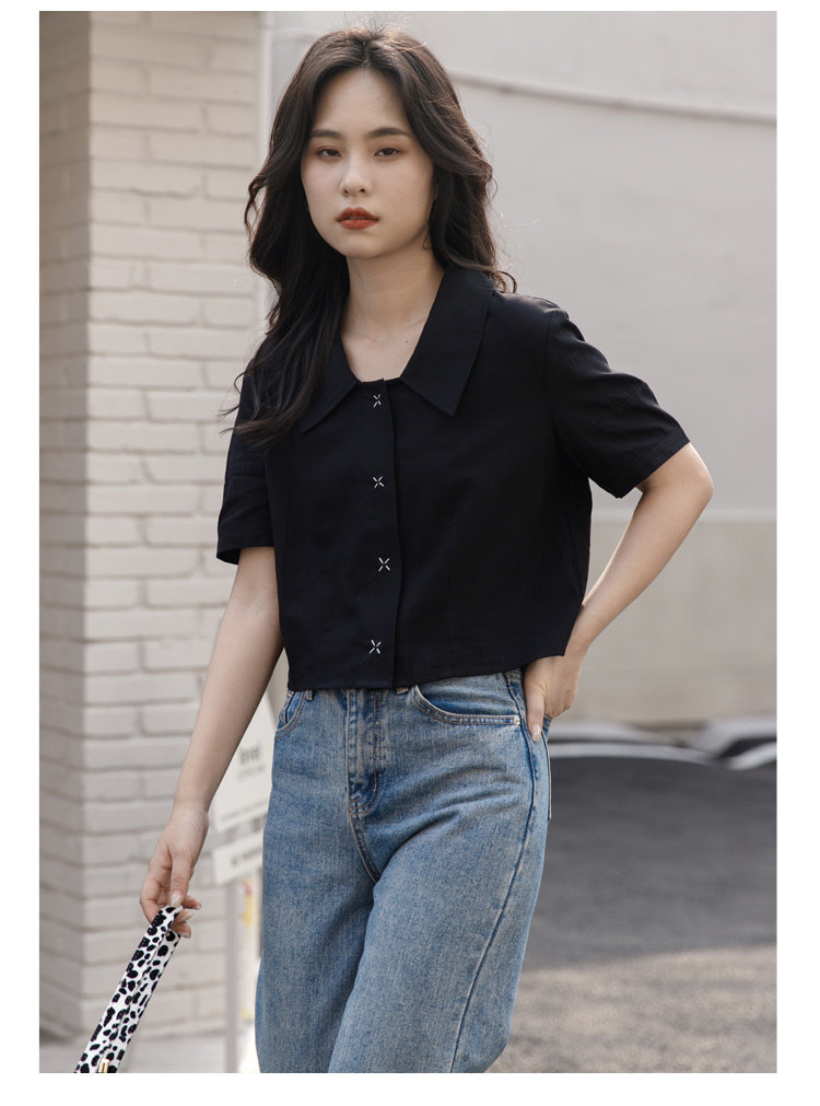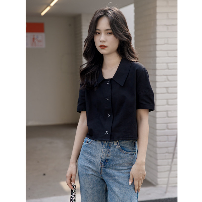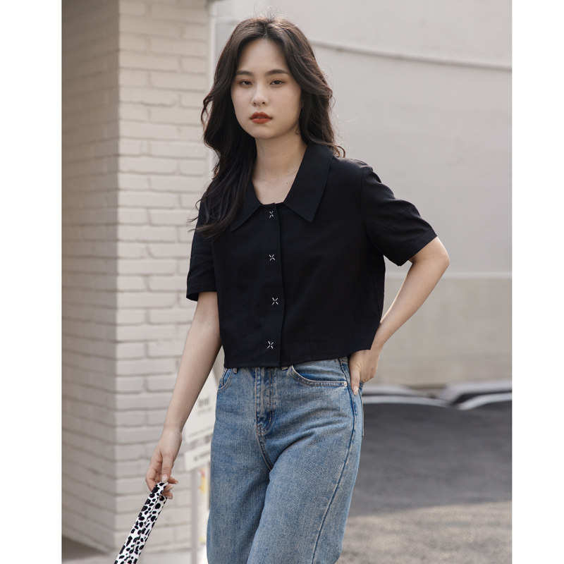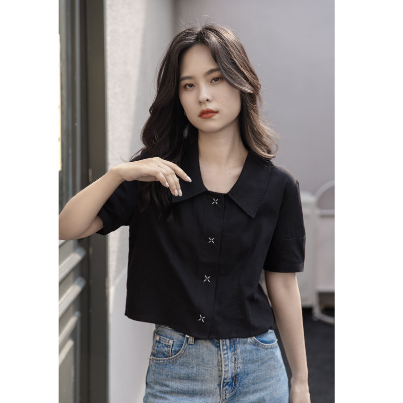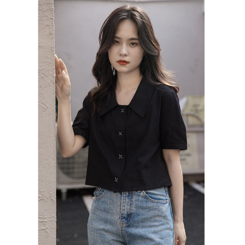 Черная летняя рубашка, дизайнерская сумка, короткий рукав, тренд сезона, подходит для подростков, французский стиль
