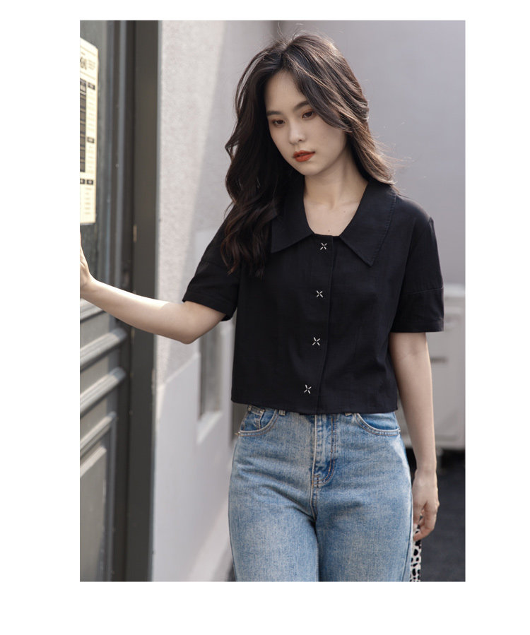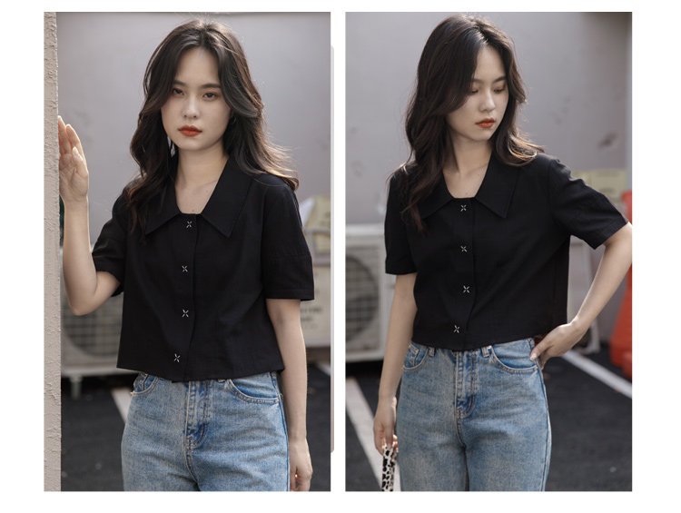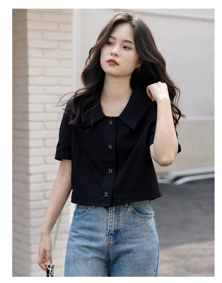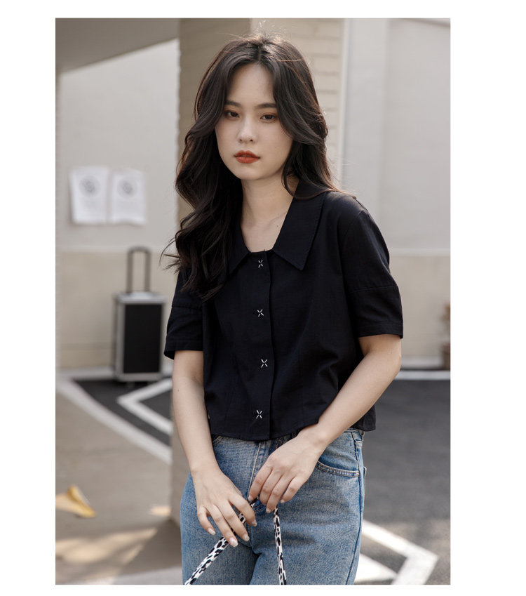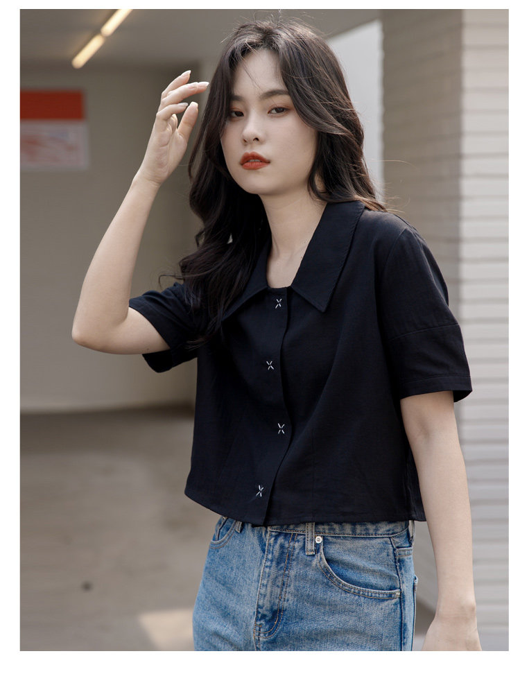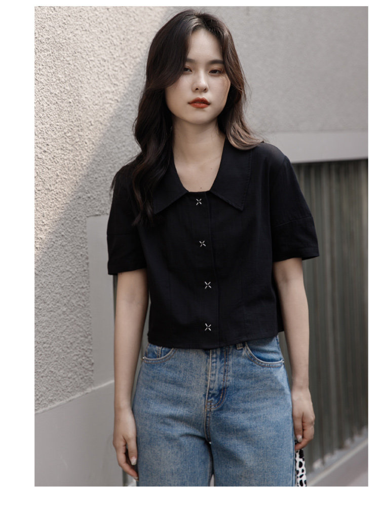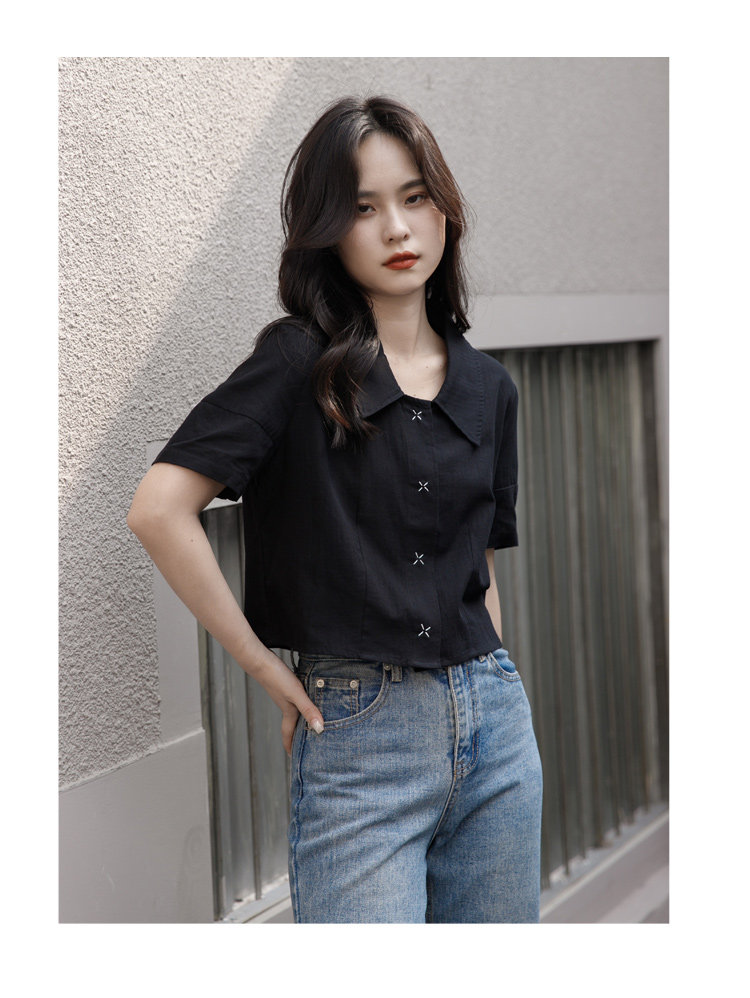 Черная летняя рубашка, дизайнерская сумка, короткий рукав, тренд сезона, подходит для подростков, французский стиль