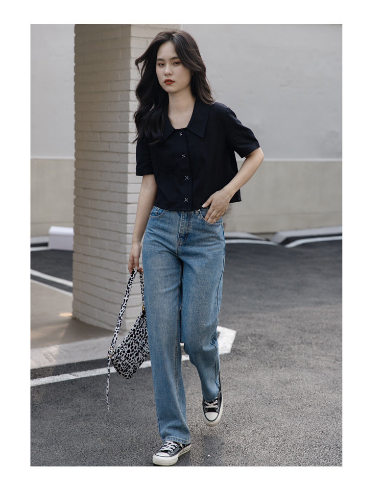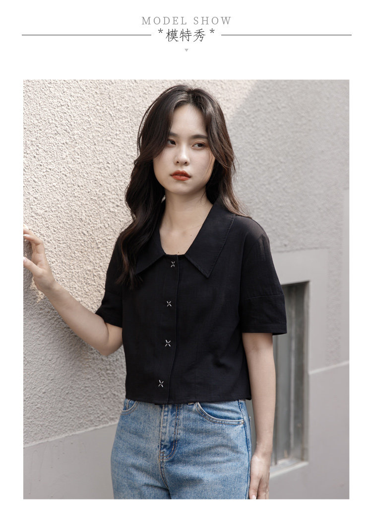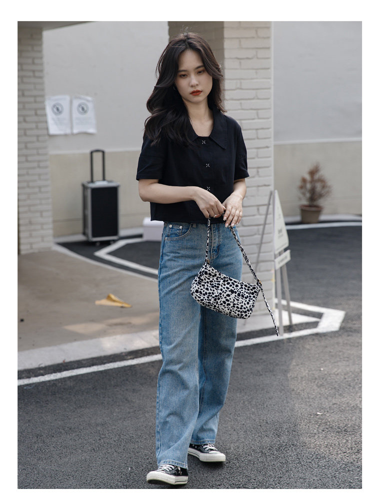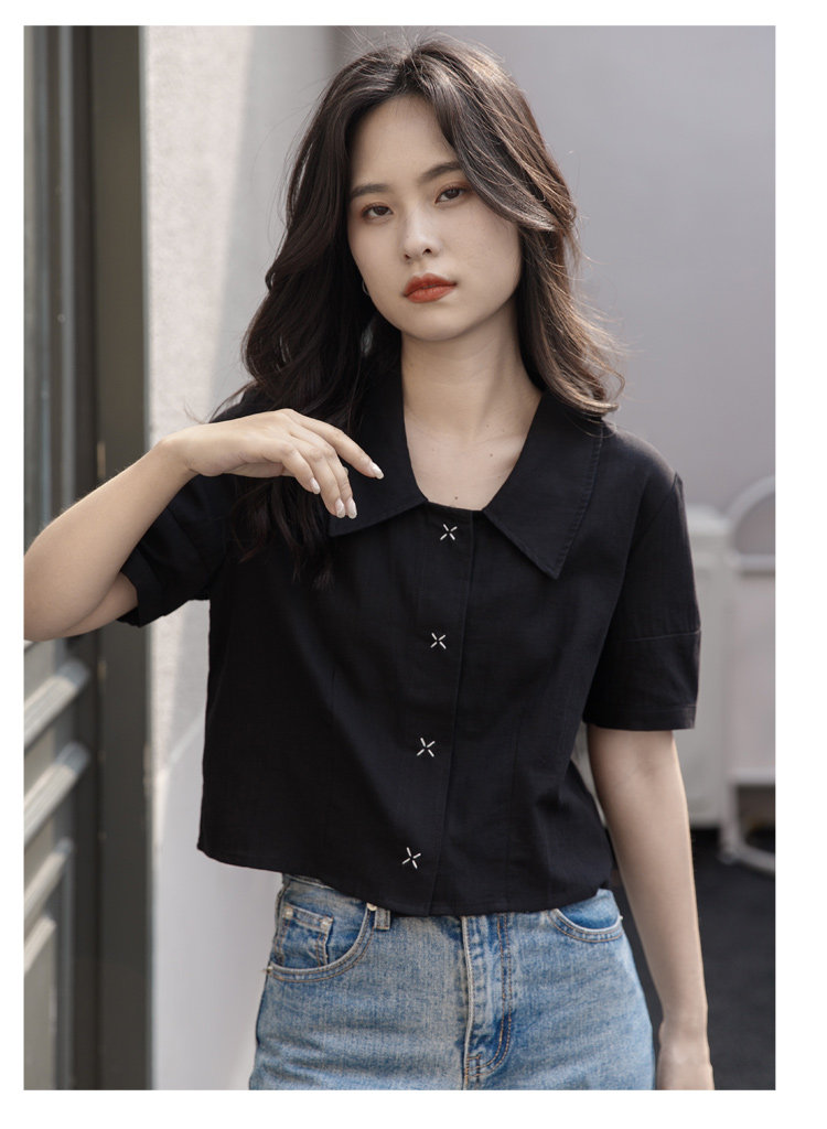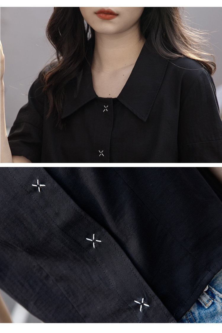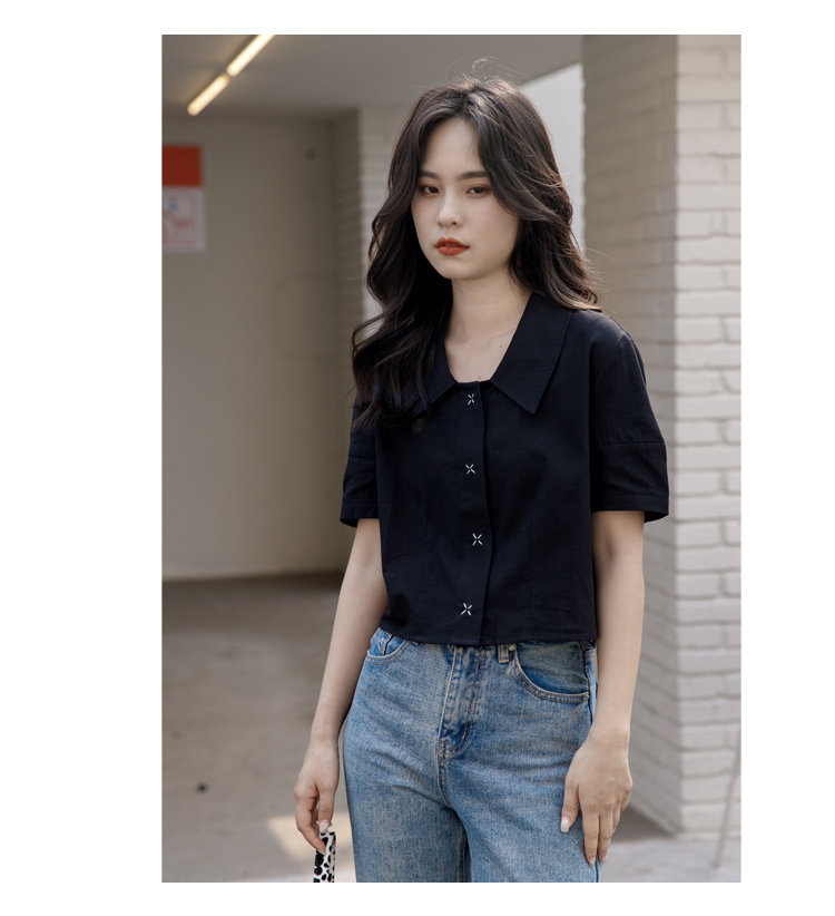 Черная летняя рубашка, дизайнерская сумка, короткий рукав, тренд сезона, подходит для подростков, французский стиль