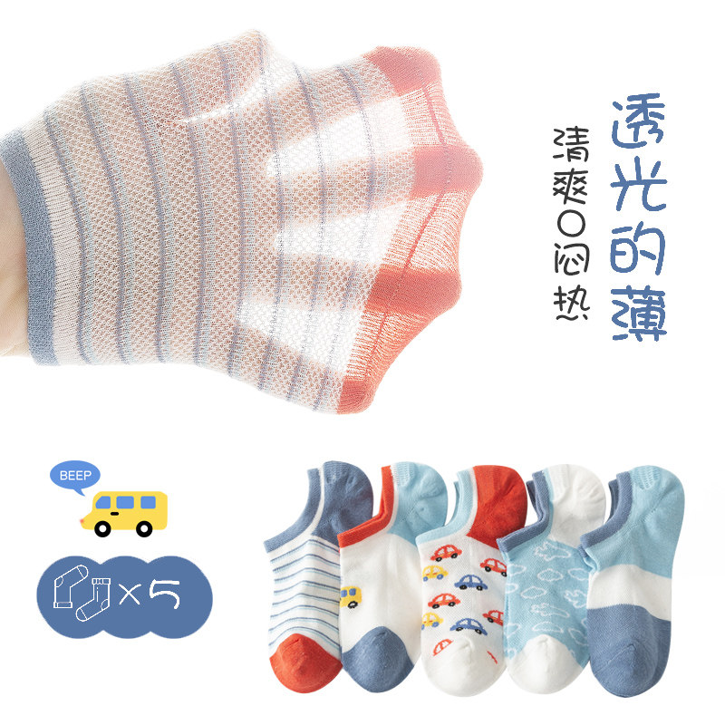 Детские летние тонкие хлопковые милые невидимые носки для мальчиков