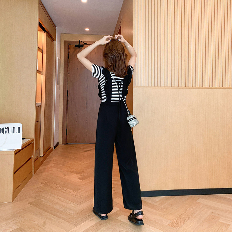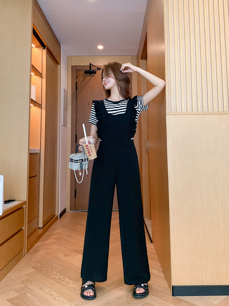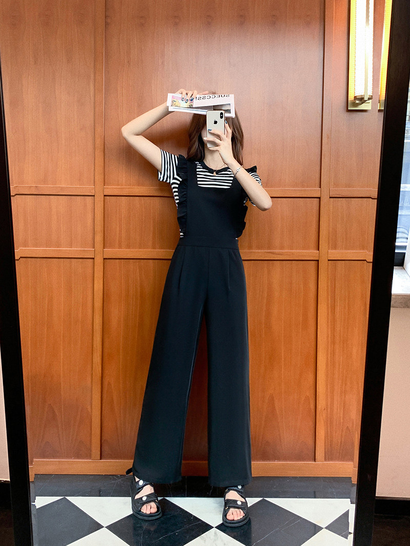 Летний комбинезон, штаны, приталенный корсет, черные подтяжки, костюм, свободный крой