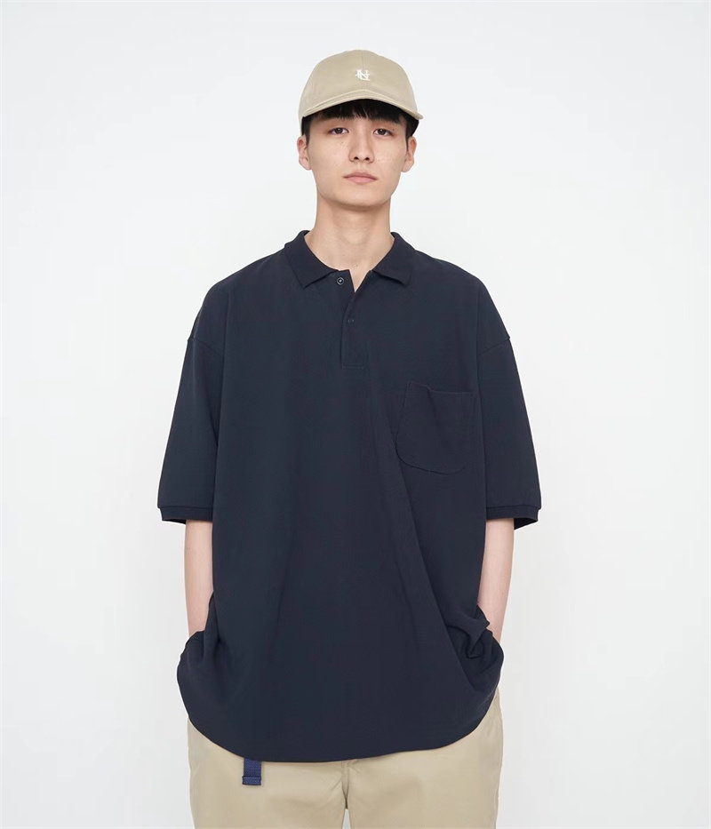 NANAMICA 24SS, однотонная хлопковая рубашка пике в японском стиле с карманами и лацканами, мужская и женская свободная рубашка-поло с короткими рукавами