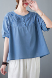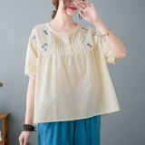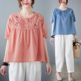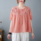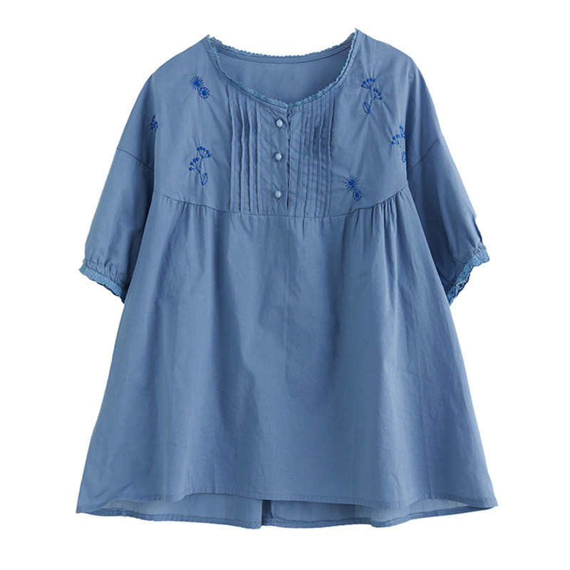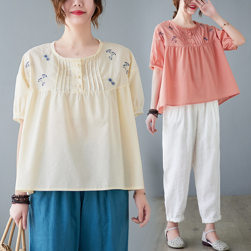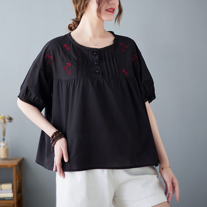Летняя футболка с круглым воротником, большой размер, с вышивкой