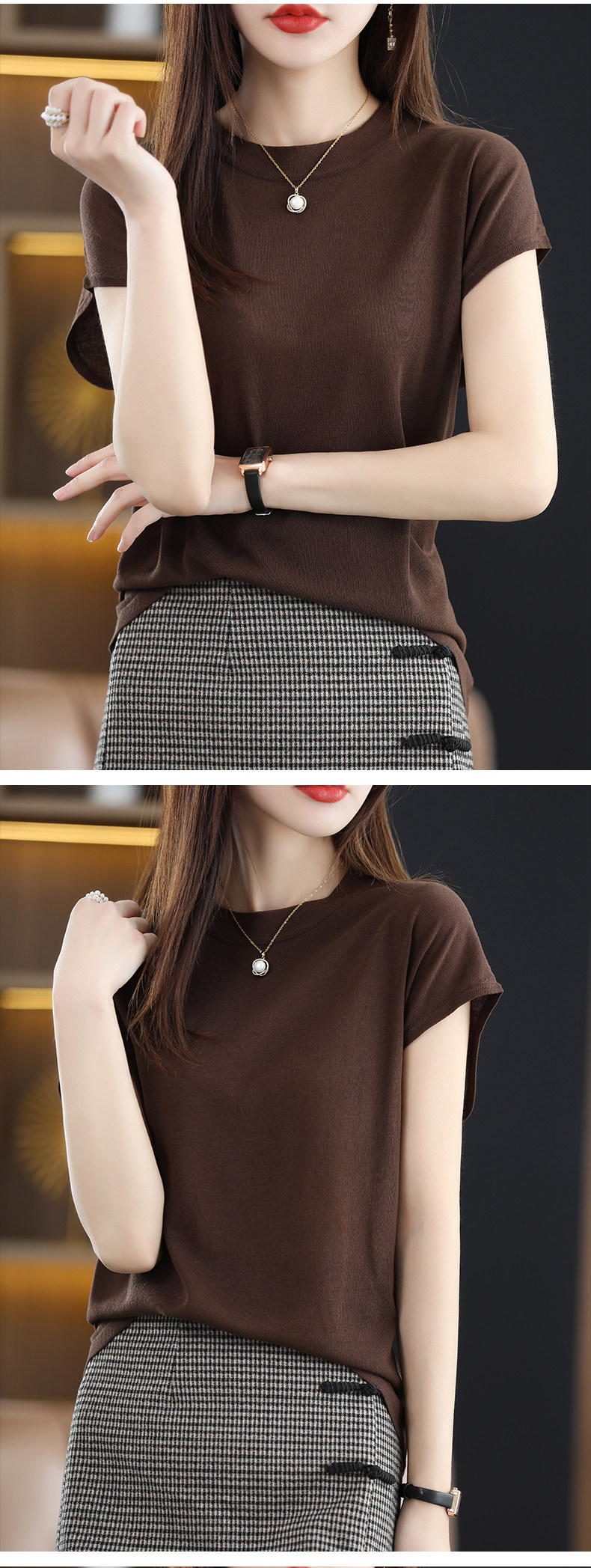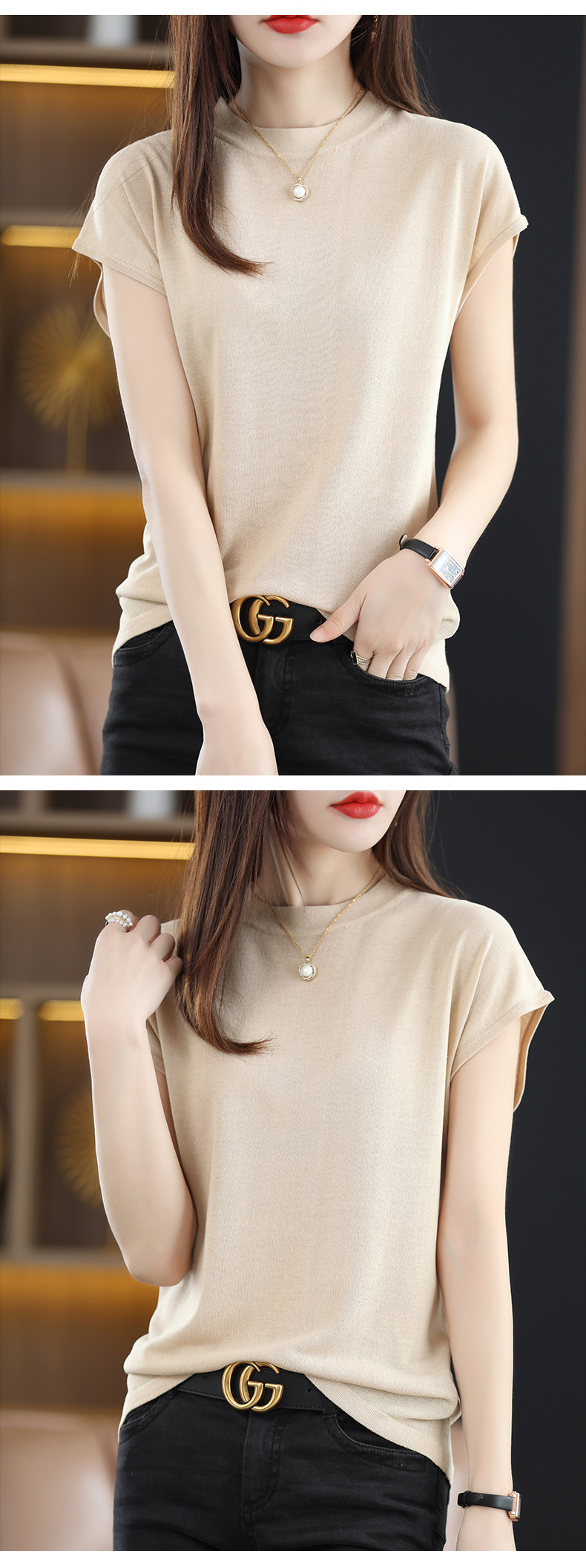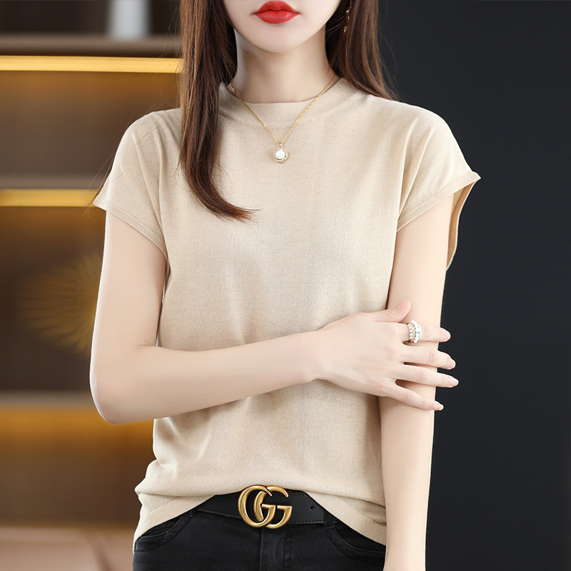 Летняя короткая футболка с коротким рукавом с круглым воротником, трикотажный жилет без рукавов, свитер, свободный крой