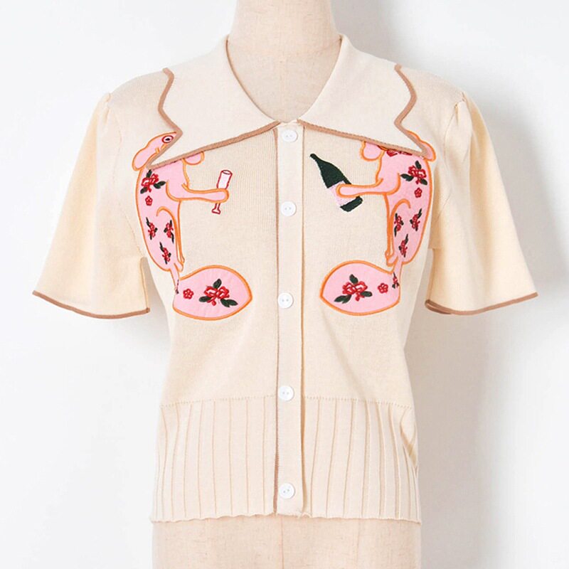 Летняя модная мультяшная летняя одежда, трикотажный кардиган, с вышивкой, короткий рукав