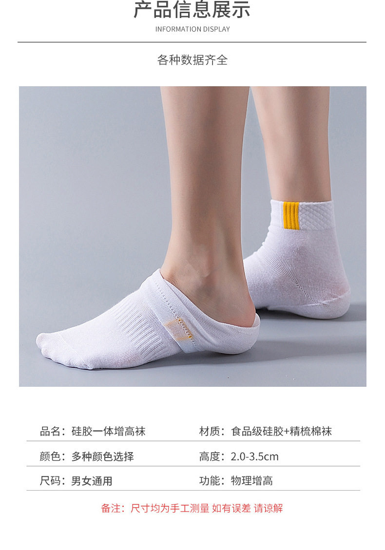 Белые носки на пятке с защитой от трещин высотой 2,5 см, встроенная силиконовая стелька, однотонный чехол на пятку, невидимые внутренние увеличивающие носки высотой 3,5 см