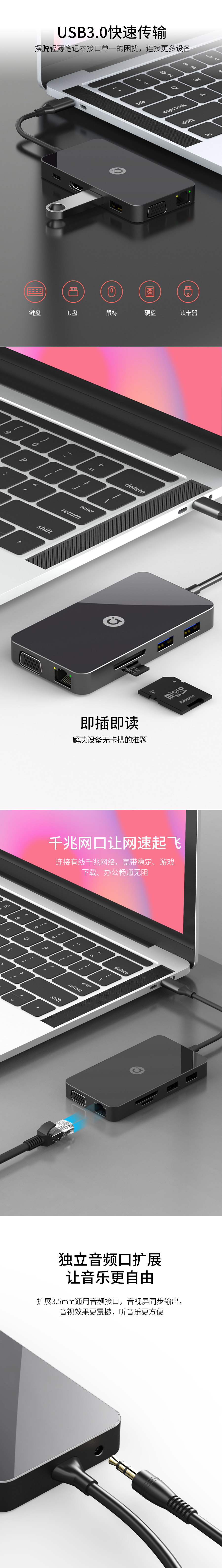 Расширение док-станции ASUS a bean Расширение ноутбука Type-c USB-кабель 3 Многоинтерфейсный сетевой кабель HDMI Адаптер-преобразователь кабеля подходит для Apple 𬞟Apple компьютер MacBookPro Huawei iPad мобильный телефон